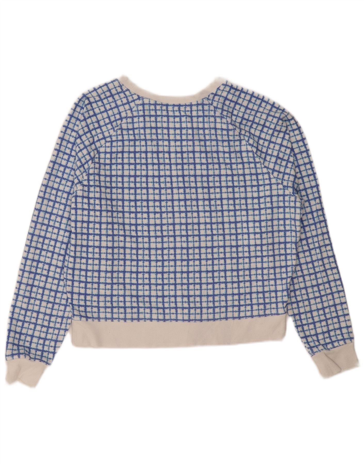 CHAMPION Womens Crop Sweatshirt Jumper UK 16 Large Blue Check Cotton