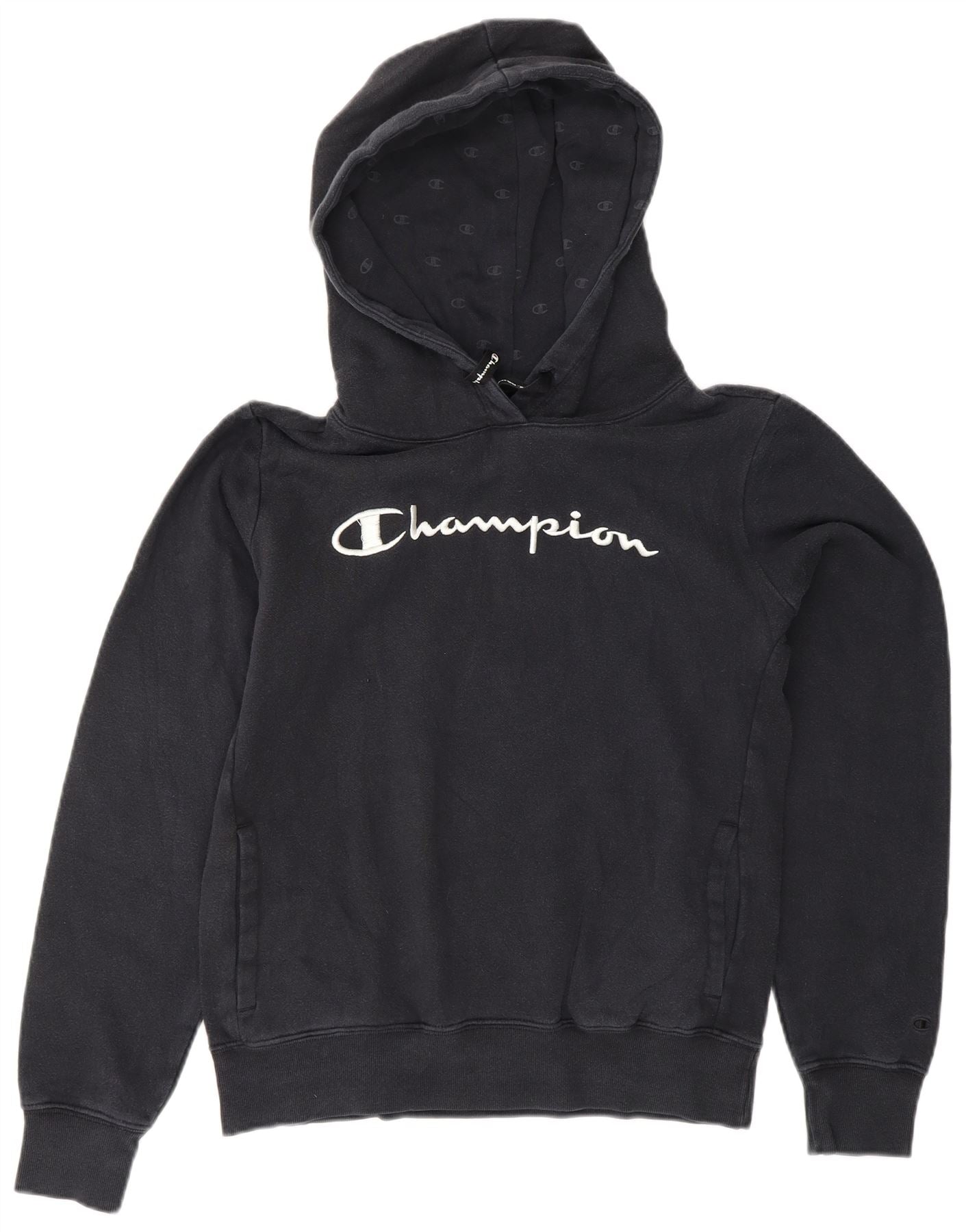 Home > Roupas de campeão vintage > mulheres > Capuz > CHAMPION Suéter feminino com capuz gráfico Reino Unido 12 algodão azul marinho médio