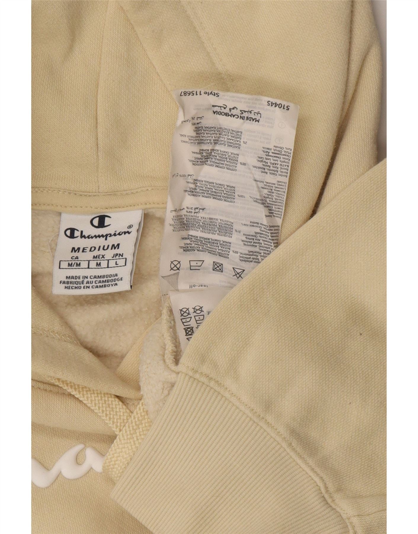 CHAMPION Suéter feminino com capuz gráfico Reino Unido 14 algodão bege médio