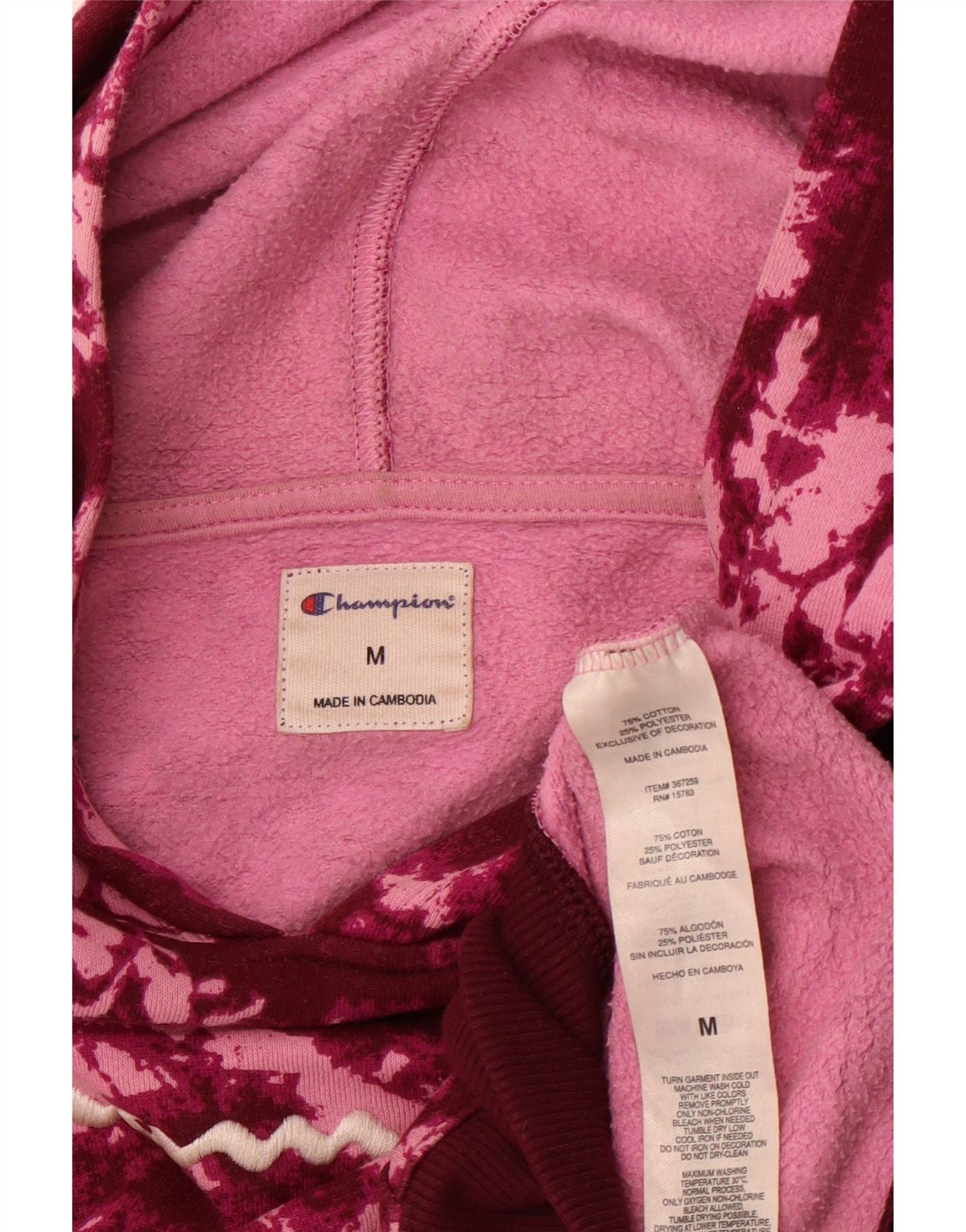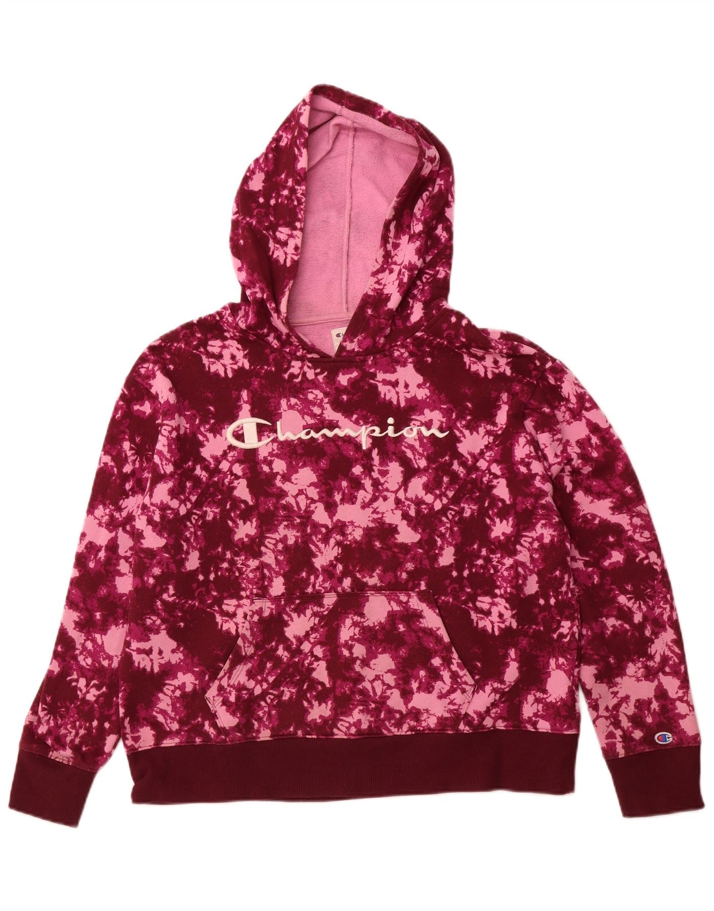 CHAMPION Womens Graphic Hoodie Jumper UK 14 Medium Pink Tie Dye Cotton