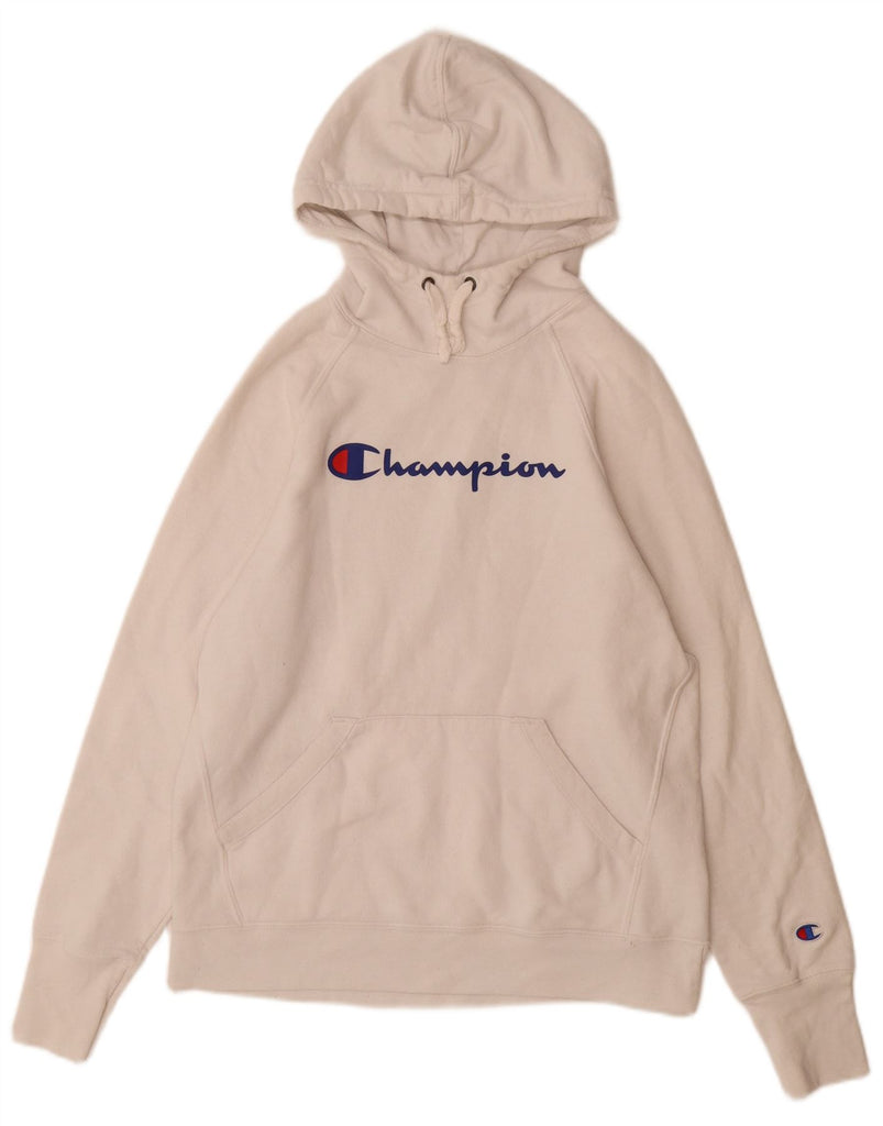 CHAMPION Womens Graphic Hoodie Jumper UK 14 Medium White Polyester