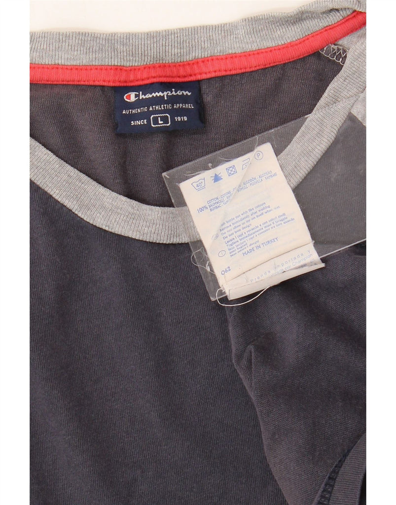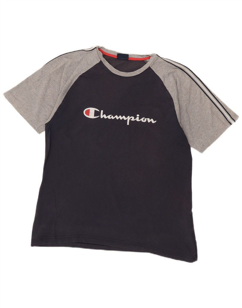 Camiseta feminina com estampa CHAMPION Reino Unido 16 grande bloco colorido azul marinho