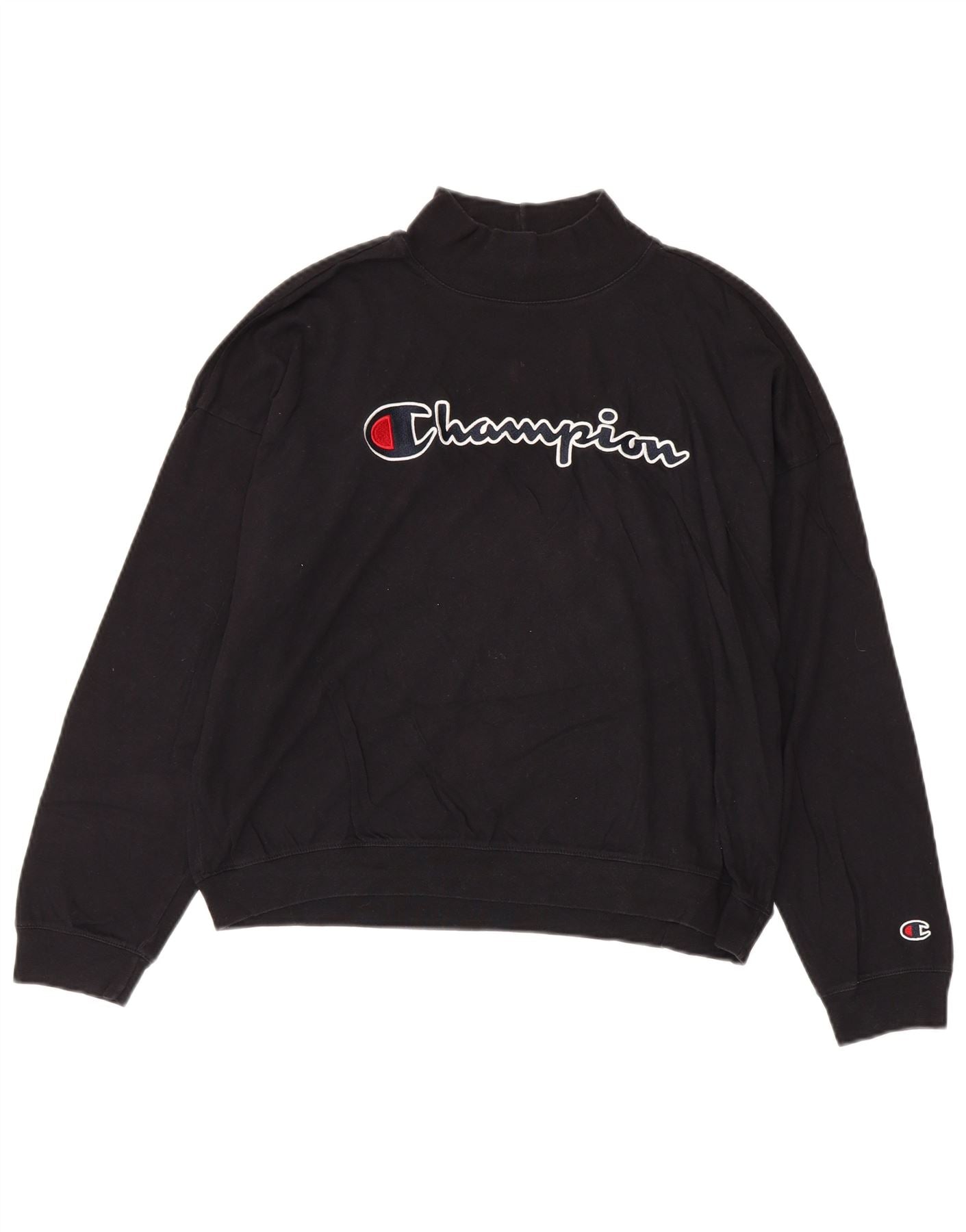 CHAMPION Womens Oversized Crop Sweatshirt Jumper UK 14 Medium Black