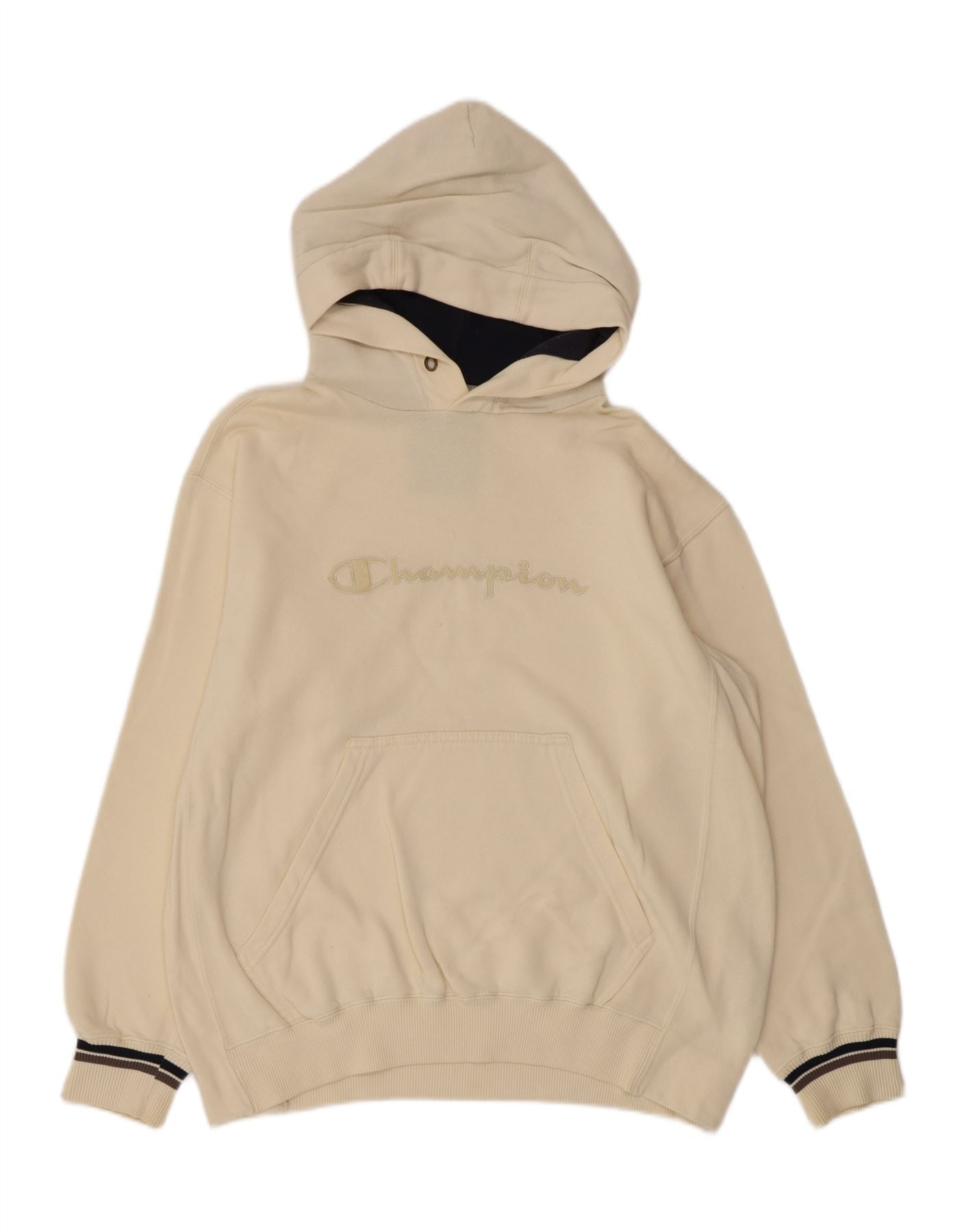 CHAMPION Womens Oversized Graphic Hoodie Jumper UK 16 Large Off White