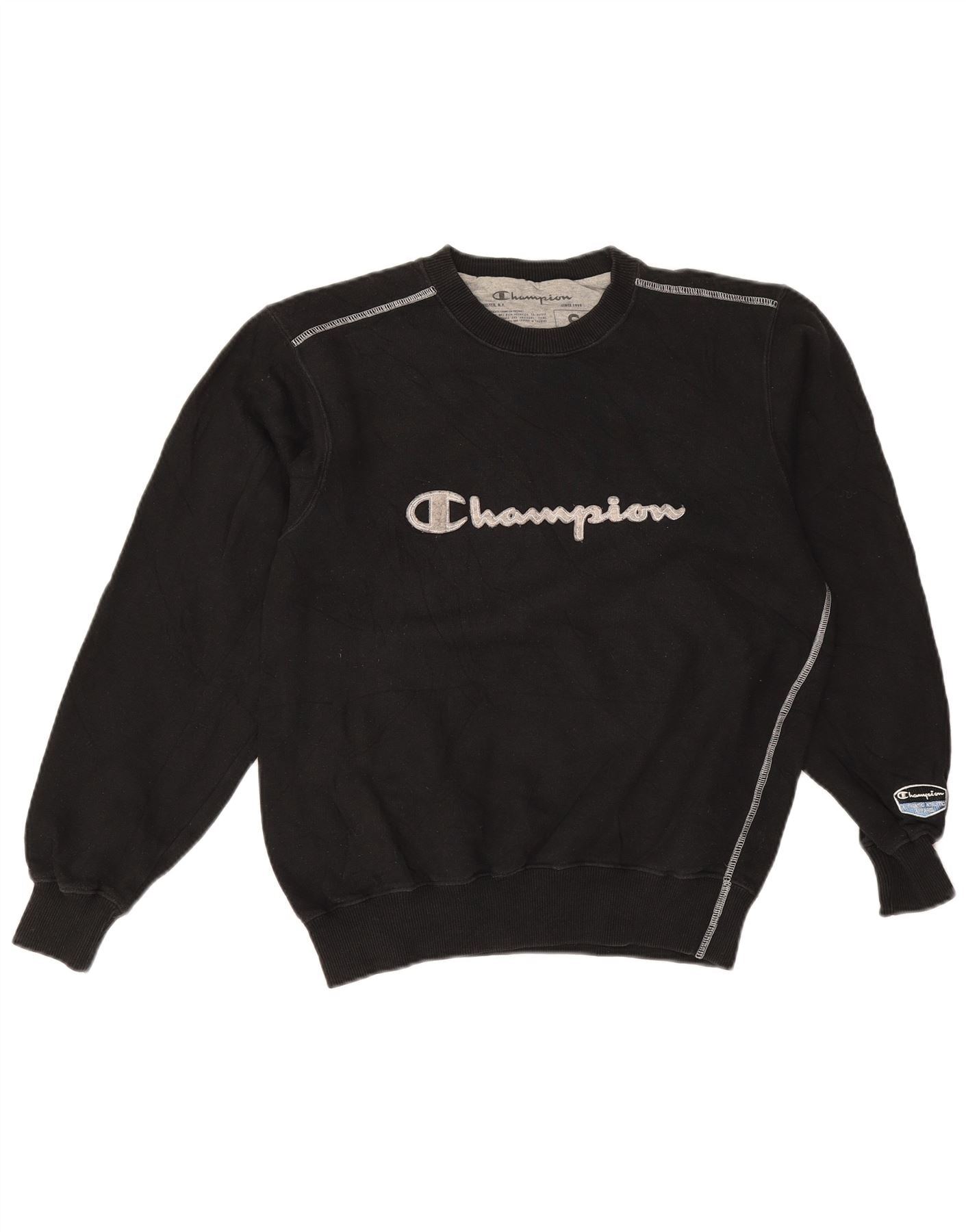 CHAMPION Suéter feminino com estampa gráfica superdimensionada Reino Unido 10 pequeno preto