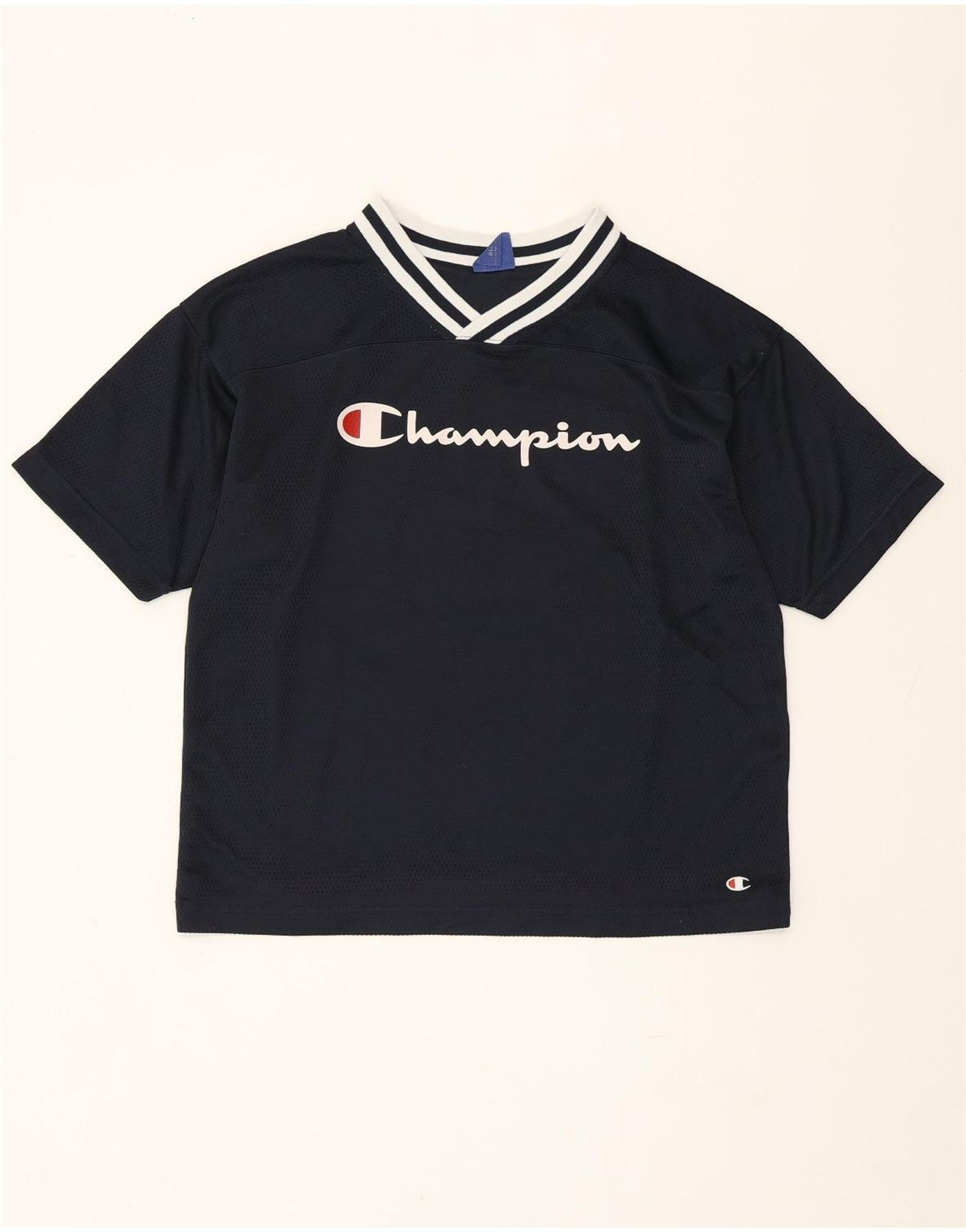 Home > Roupas de campeão vintage > mulheres > Camisetas > Camiseta feminina grande com estampa CHAMPION Reino Unido 10 pequena azul marinho