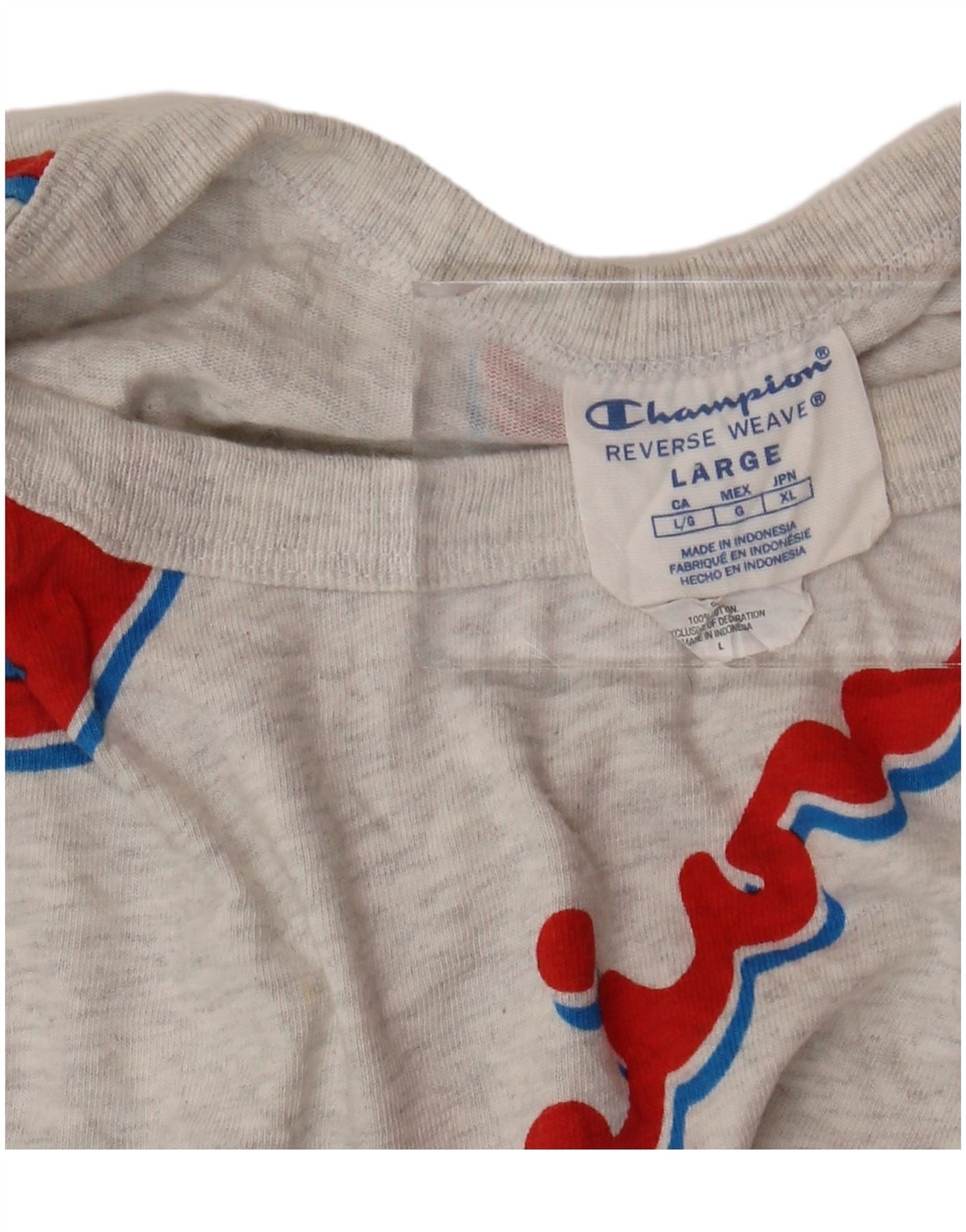 Camiseta feminina CHAMPION com estampa reversa de tecelagem reversa Reino Unido 16 grande cinza