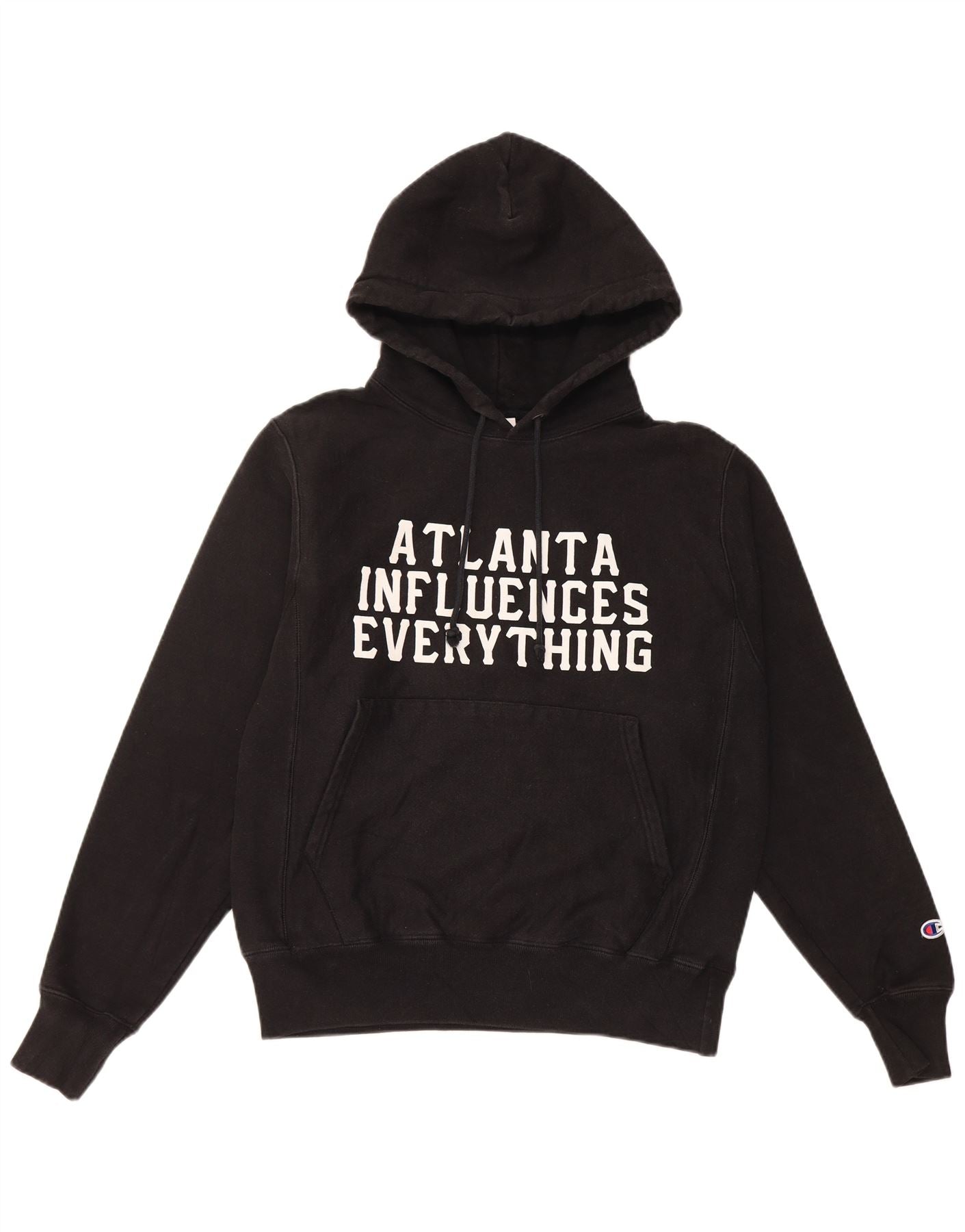CHAMPION Womens Reverse Weave Graphic Hoodie Jumper UK 10 Small Black