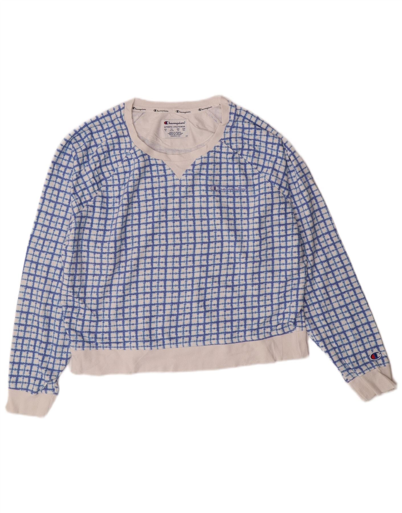Home > Roupas de campeão vintage > mulheres > Moletons > Champion moletom feminino jumper UK 18 XL azul xadrez algodão