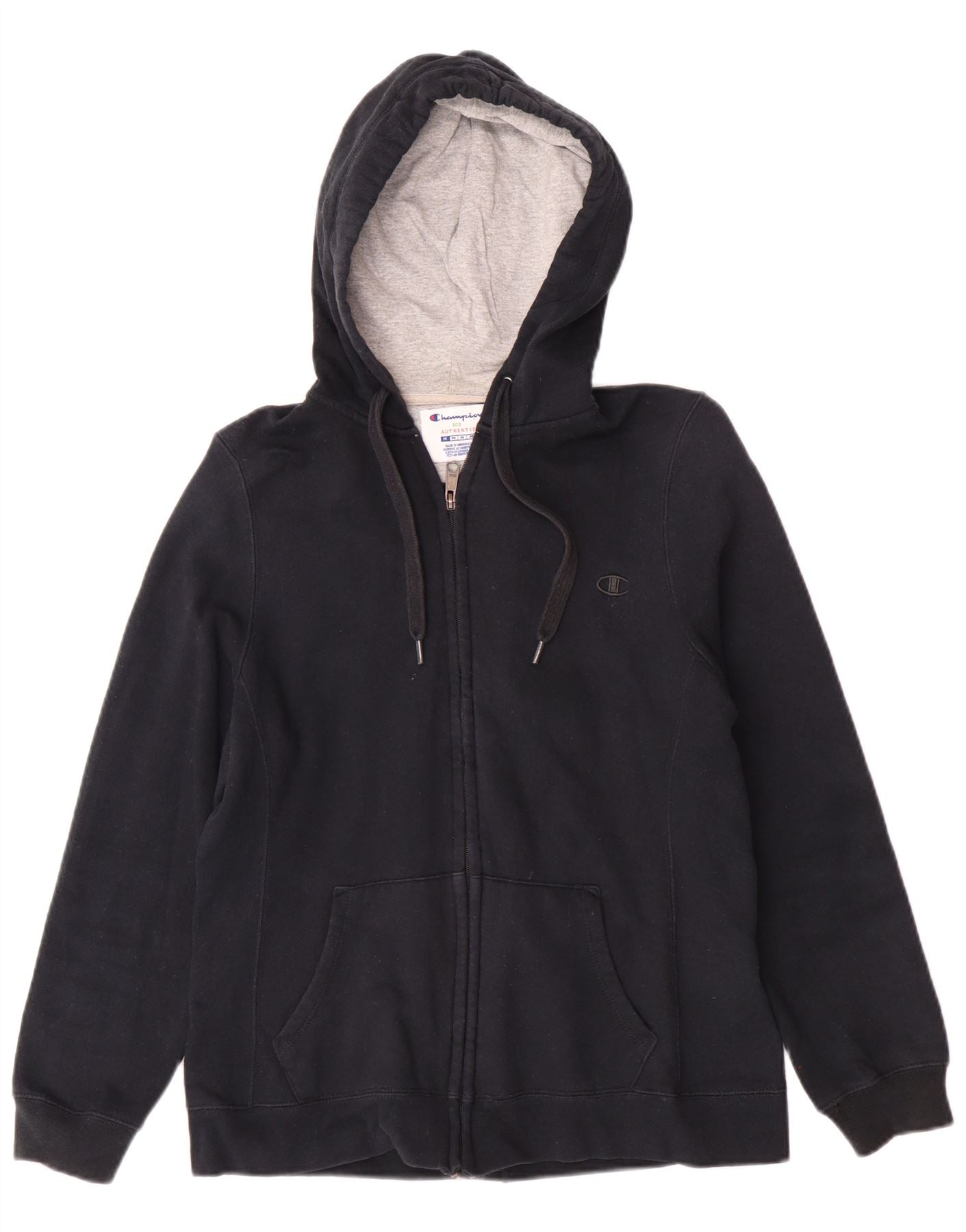 Home > Roupas de campeão vintage > mulheres > Capuz > Suéter feminino Champion com capuz e zíper Reino Unido 14 algodão preto médio