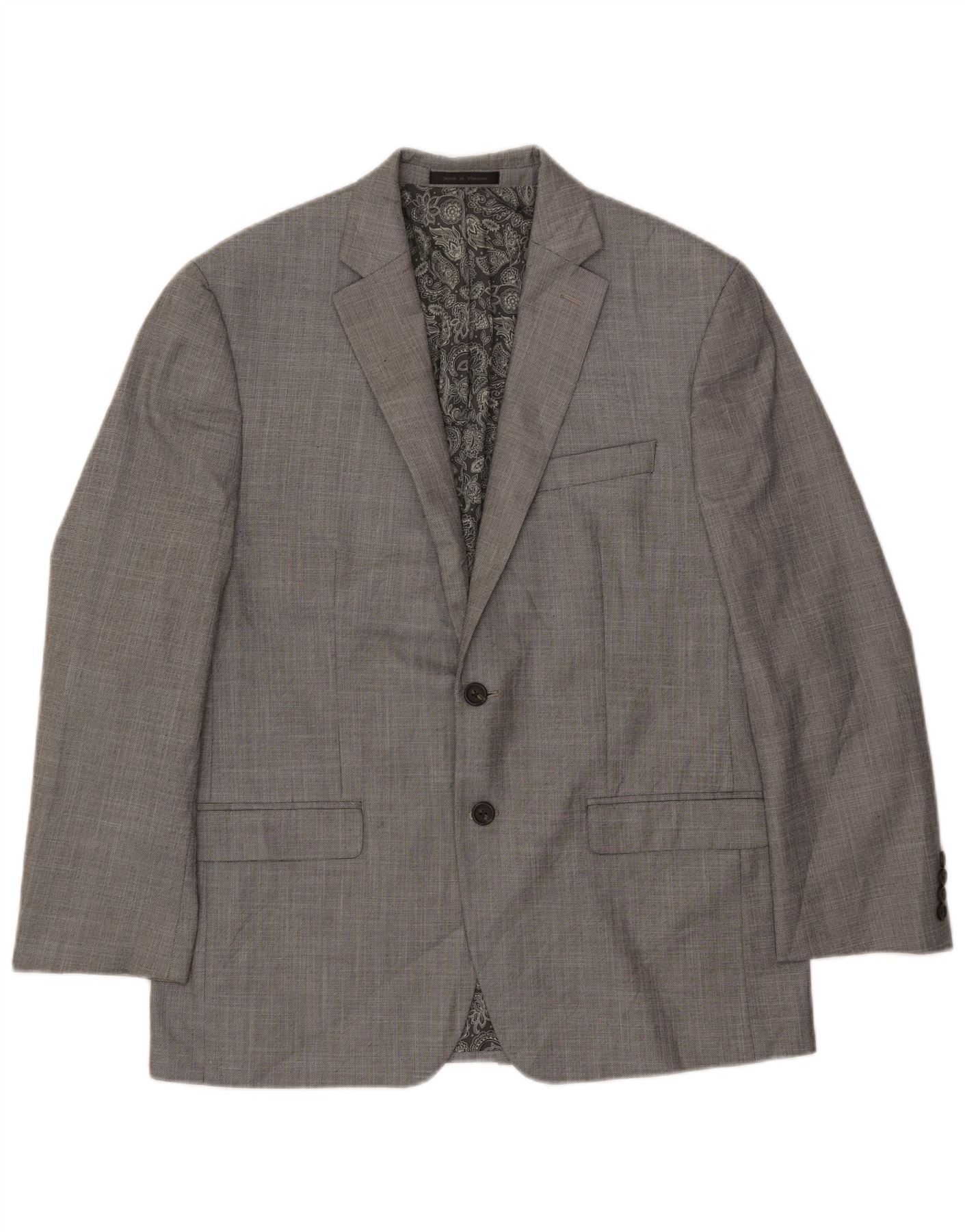 Jaqueta blazer masculina Chaps com 2 botões Reino Unido 40 grande cinza Chevron poliéster