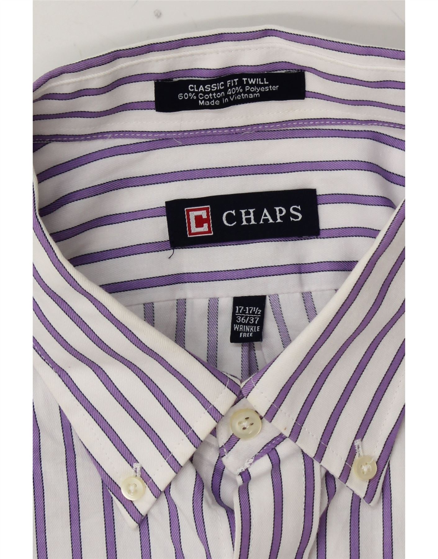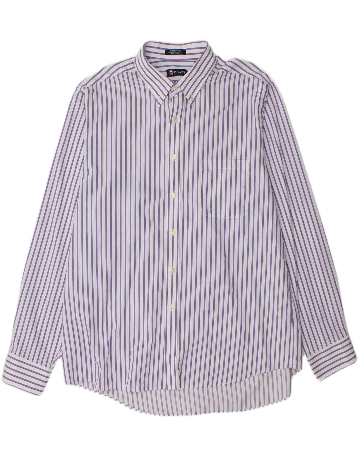 Camisa masculina CHAPS Classic Fit tamanho 17 17 1/2 XL algodão listrado roxo