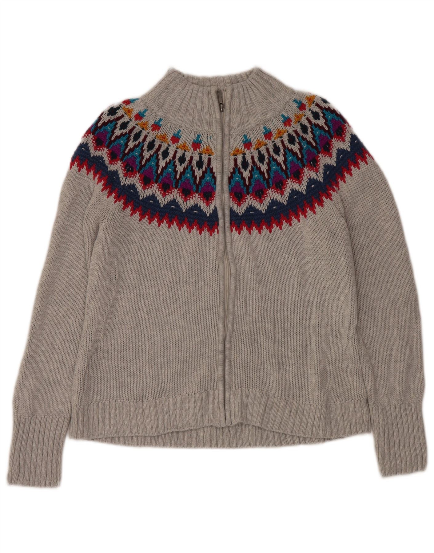 Suéter cardigã feminino CHAPS Reino Unido 18 XL cinza Fair Isle algodão