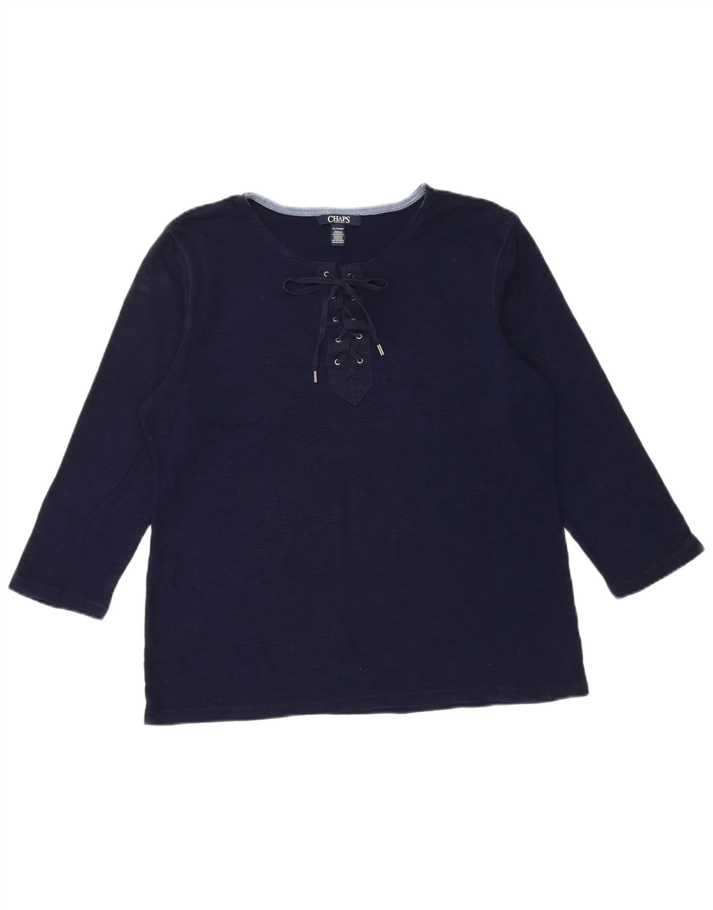 Top feminino CHAPS manga 3/4 UK 18 XL azul marinho algodão
