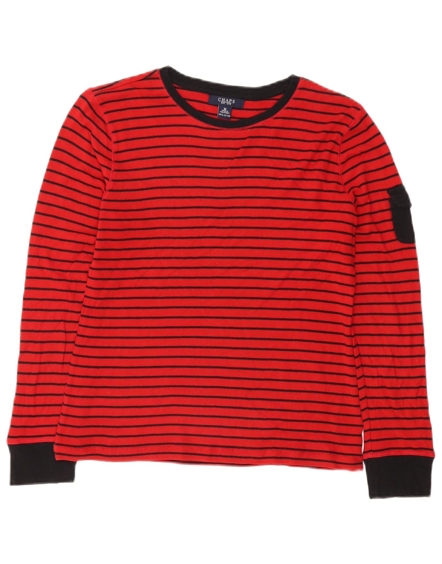Top feminino CHAPS manga comprida UK 12 algodão listrado vermelho médio