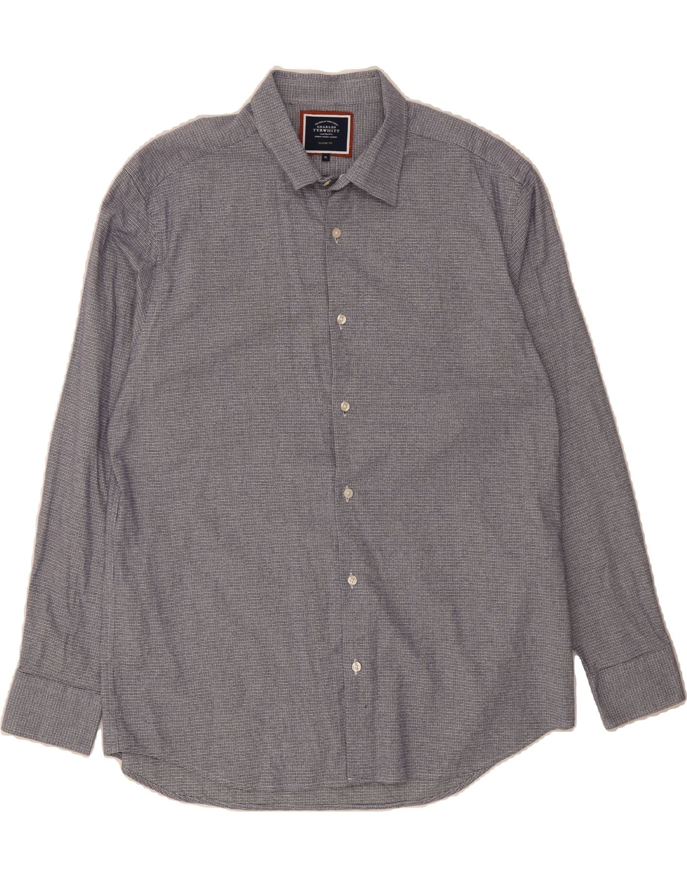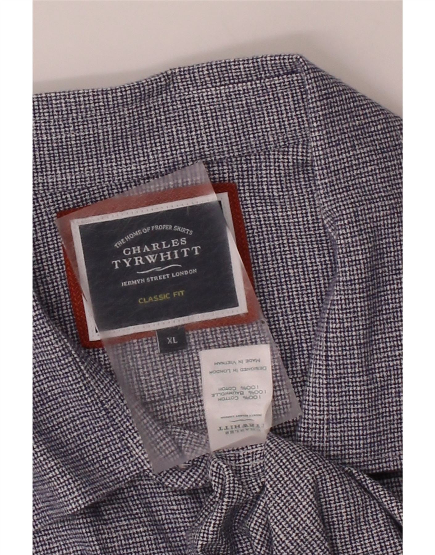 CHARLES TYRWHITT Camisa masculina clássica de ajuste XL azul marinho Houndstooth algodão
