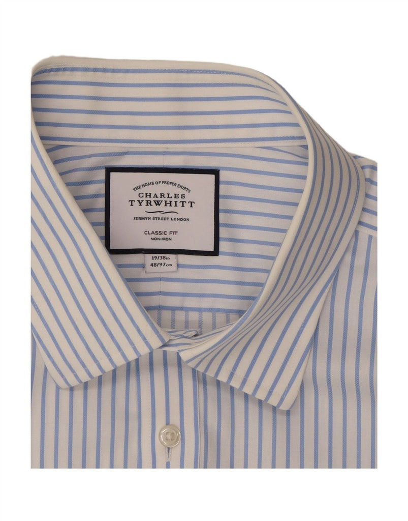 CHARLES TYRWHITT Camisa masculina de ajuste clássico tamanho 19 38 3XL algodão listrado azul