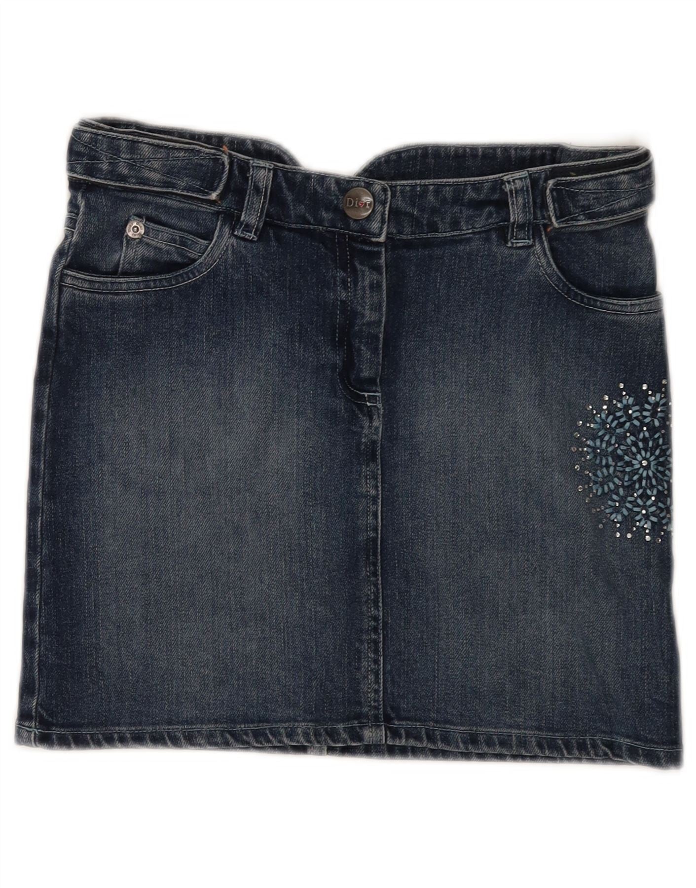 CHRISTIAN DIOR Mini saia jeans para meninas 9-10 anos W25 algodão floral azul