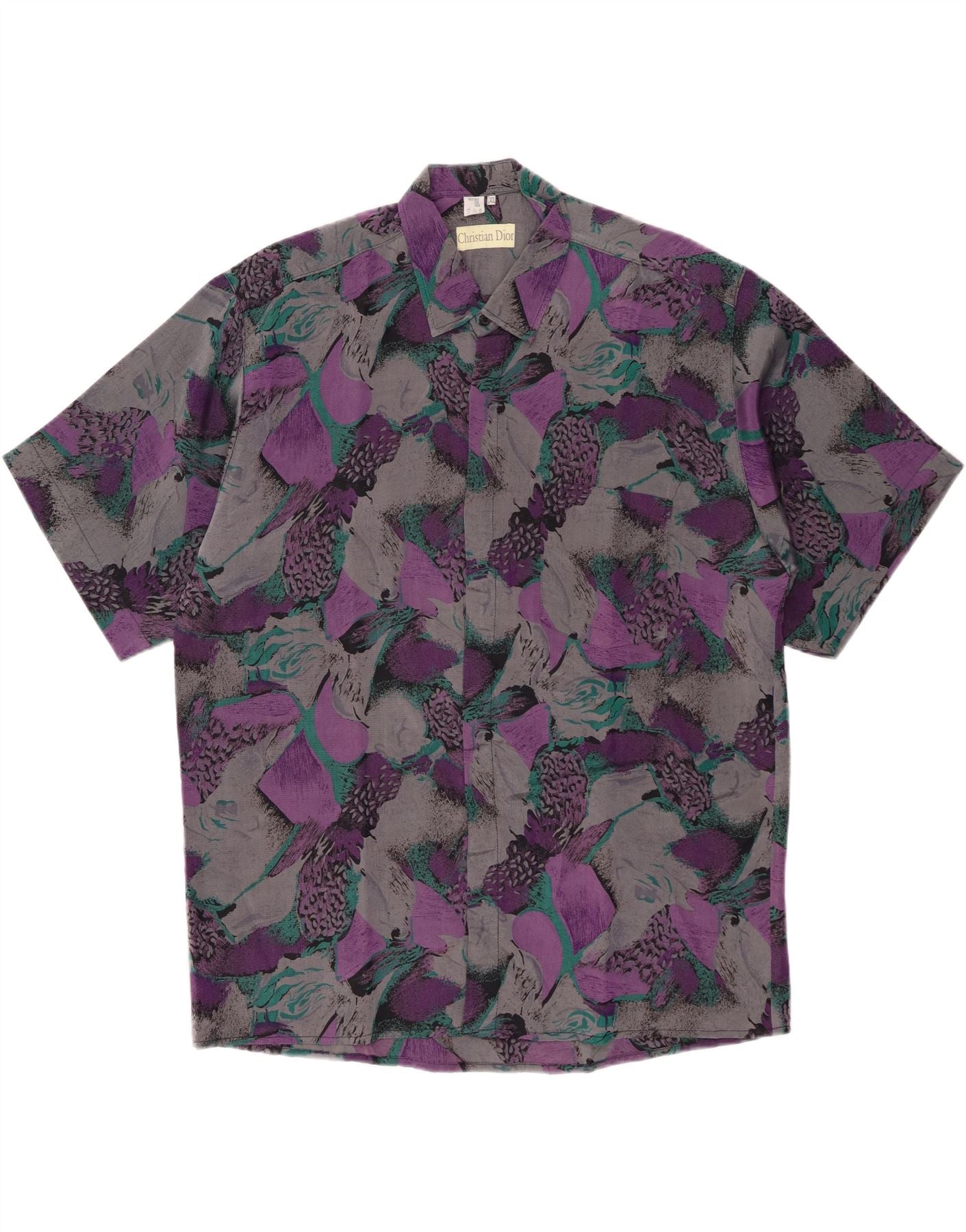 CHRISTIAN DIOR Camisa masculina de manga curta com padrão abstrato XL multicolorida