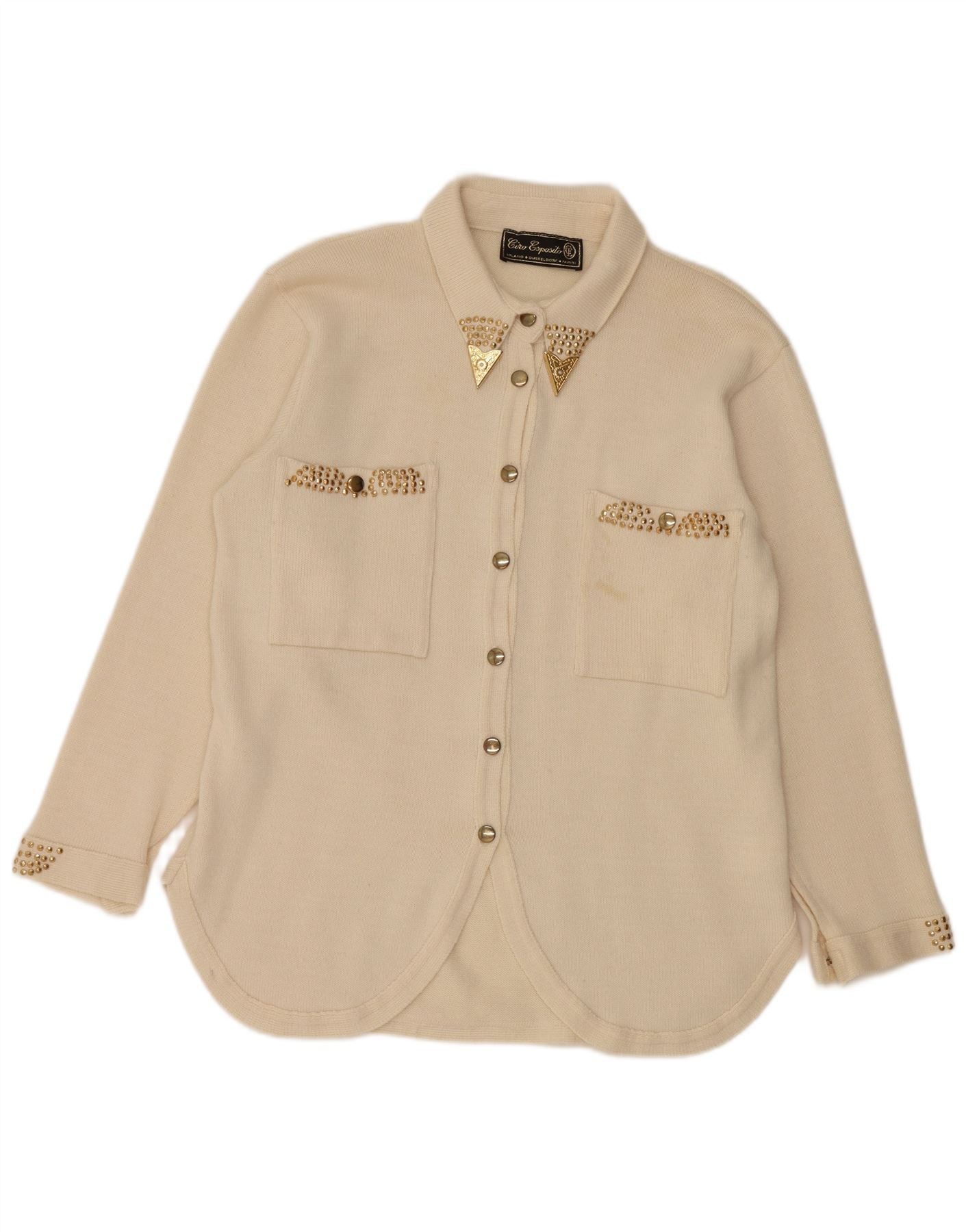 Blusa feminina de malha CIRO ESPOSITO Reino Unido 14 grande lã branca