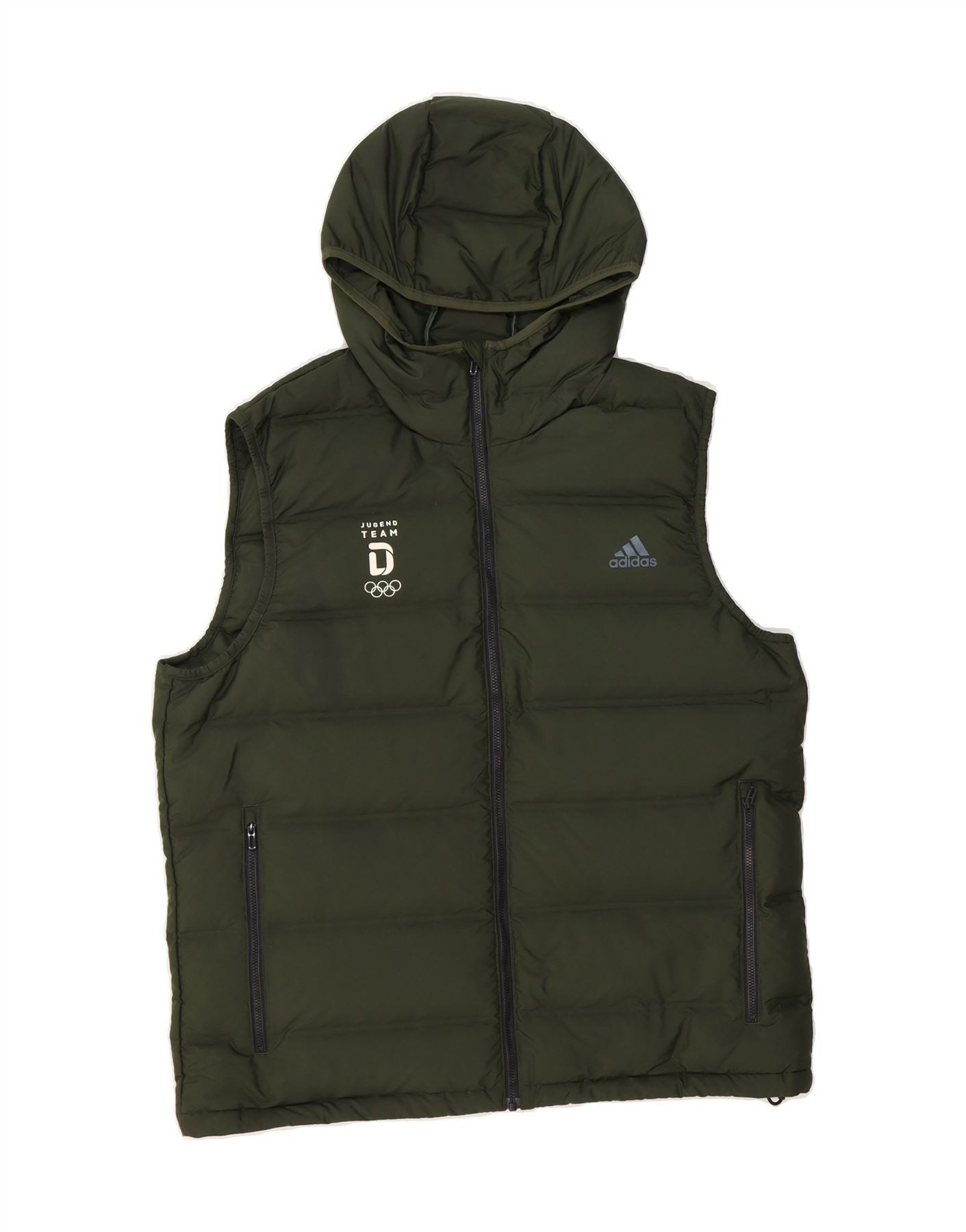 Colete acolchoado com capuz masculino ADIDAS UK 40 grande poliéster verde