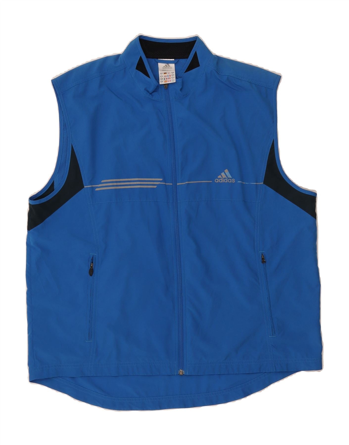 - Descrição da IA: Este colete esportivo Adidas usado é perfeito para treinar. Construído em poliéster tecido leve, este colete azul sem mangas possui fecho de correr completo e gola redonda. O ajuste regular garante conforto, enquanto os bolsos com zíper oferecem armazenamento seguro. Elementos reflexivos melhoram a visibilidade. Adornado com o icônico logotipo da Adidas, este colete tamanho XL pode ser lavado na máquina e foi fabricado no Vietnã.