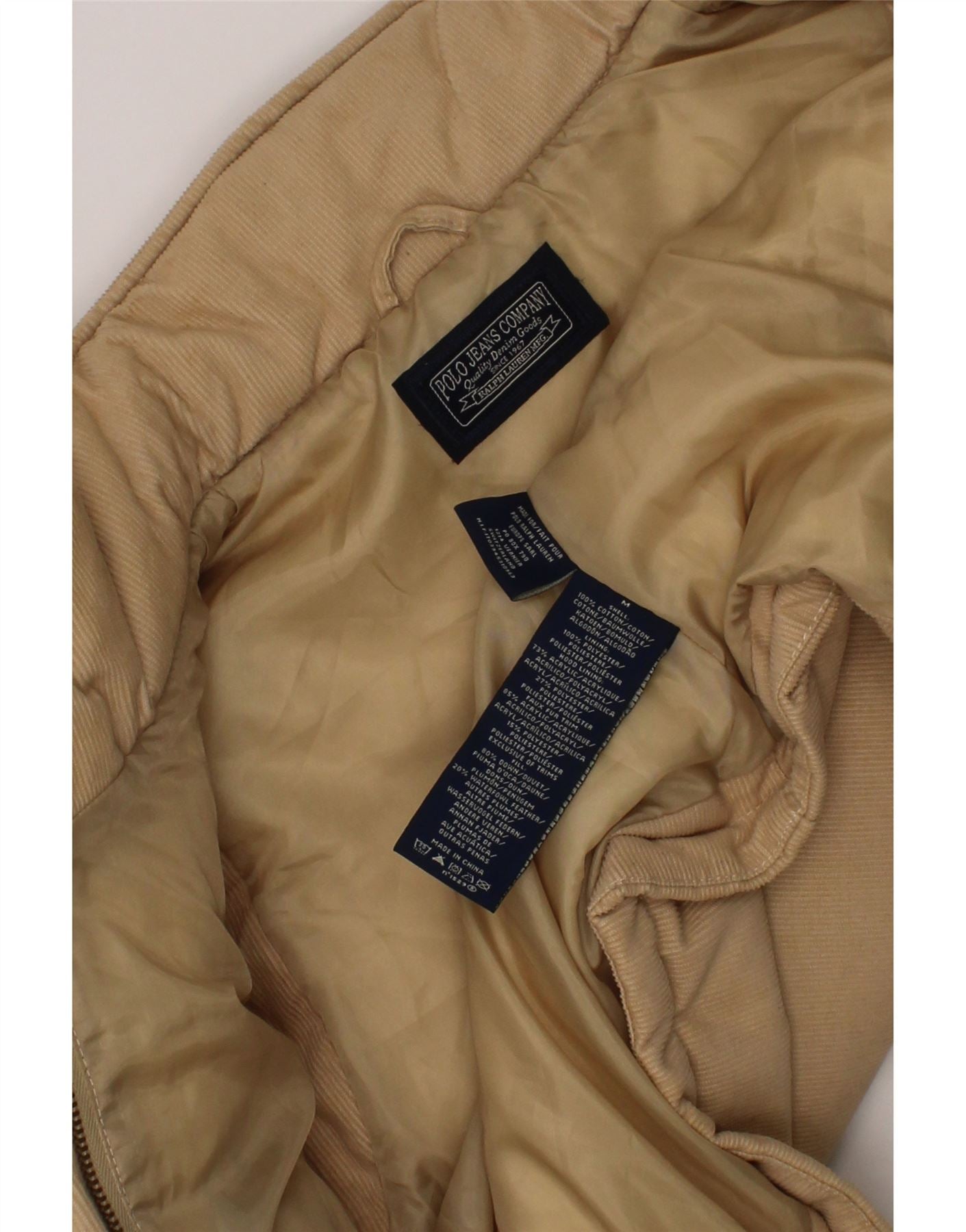 Colete feminino acolchoado RALPH LAUREN UK 14 algodão risca de giz bege médio