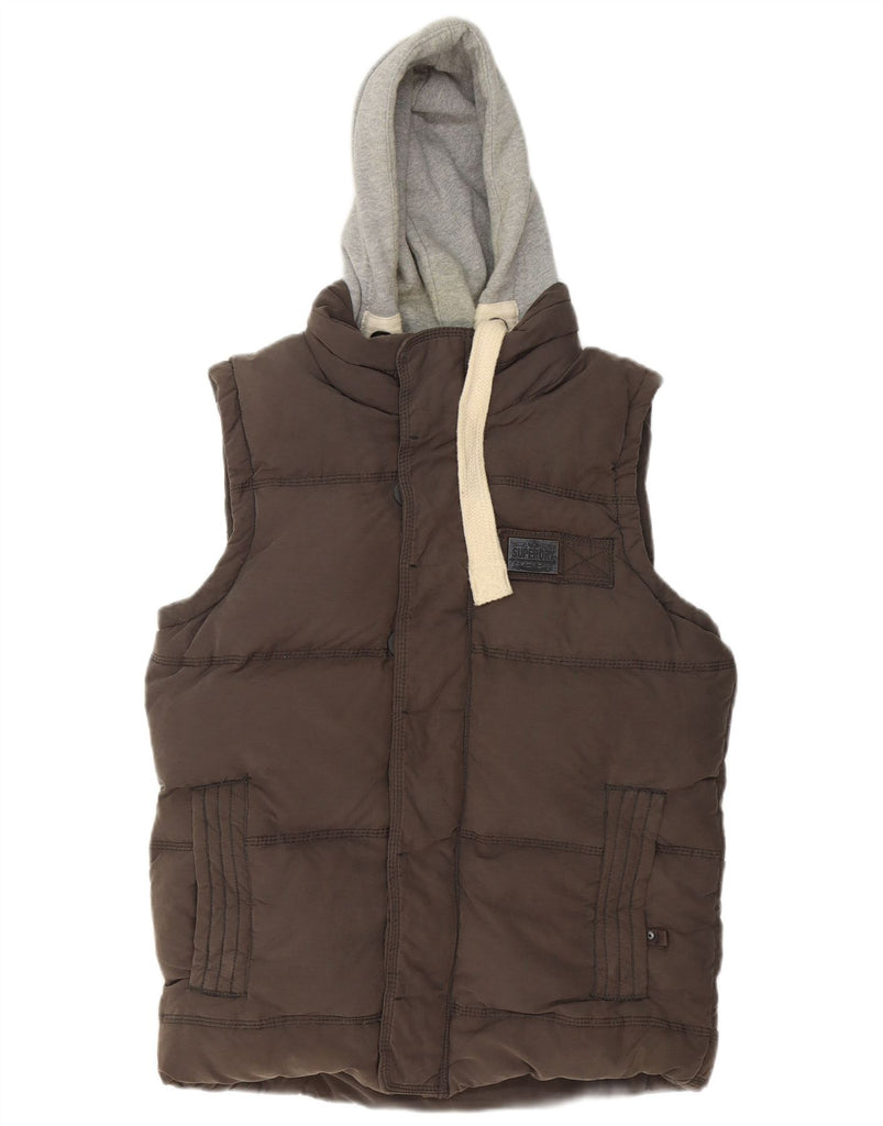 Colete masculino acolchoado com capuz SUPERDRY UK 40 algodão cinza grande