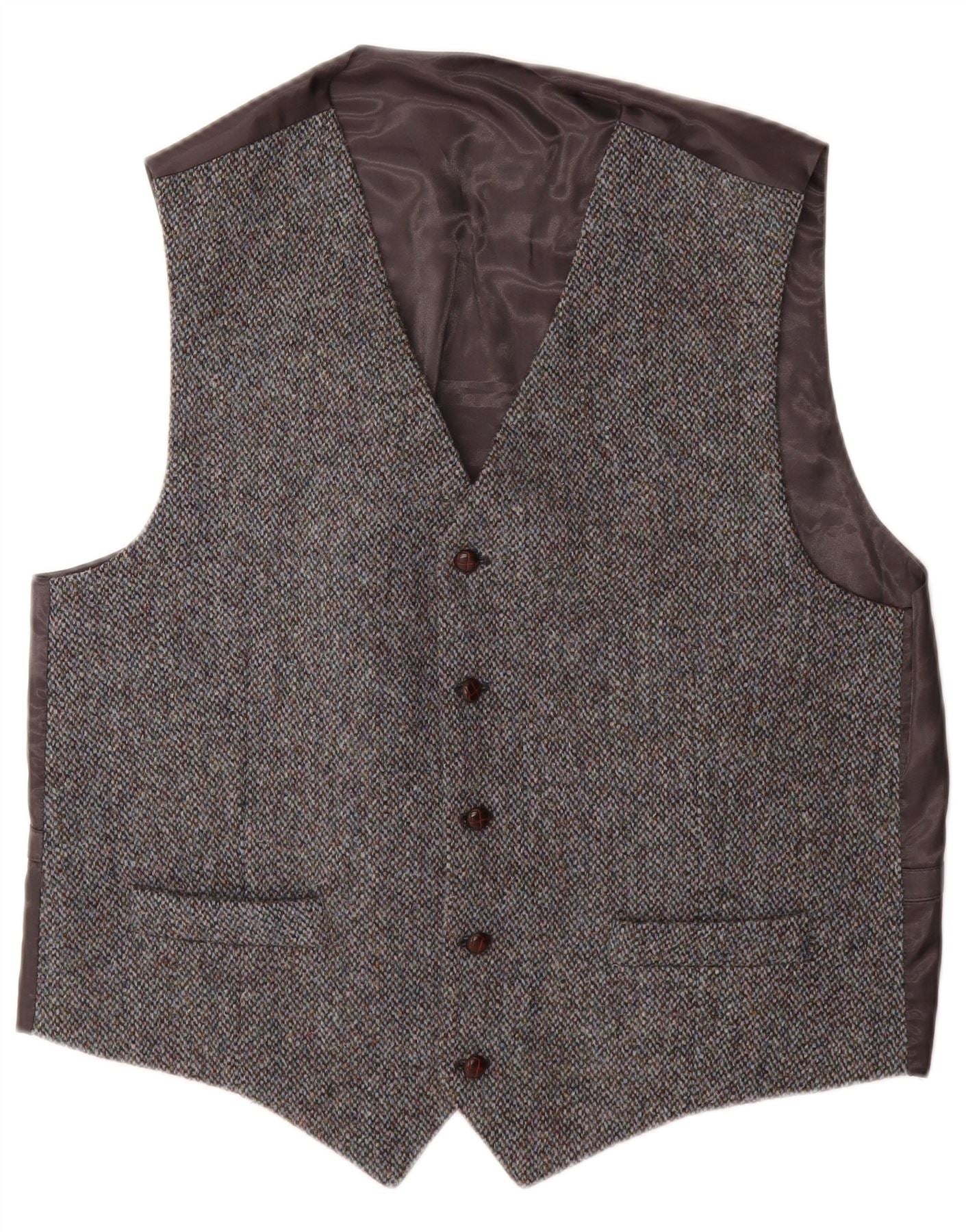 Colete masculino HARRIS TWEED XL cinza manchado de lã nova