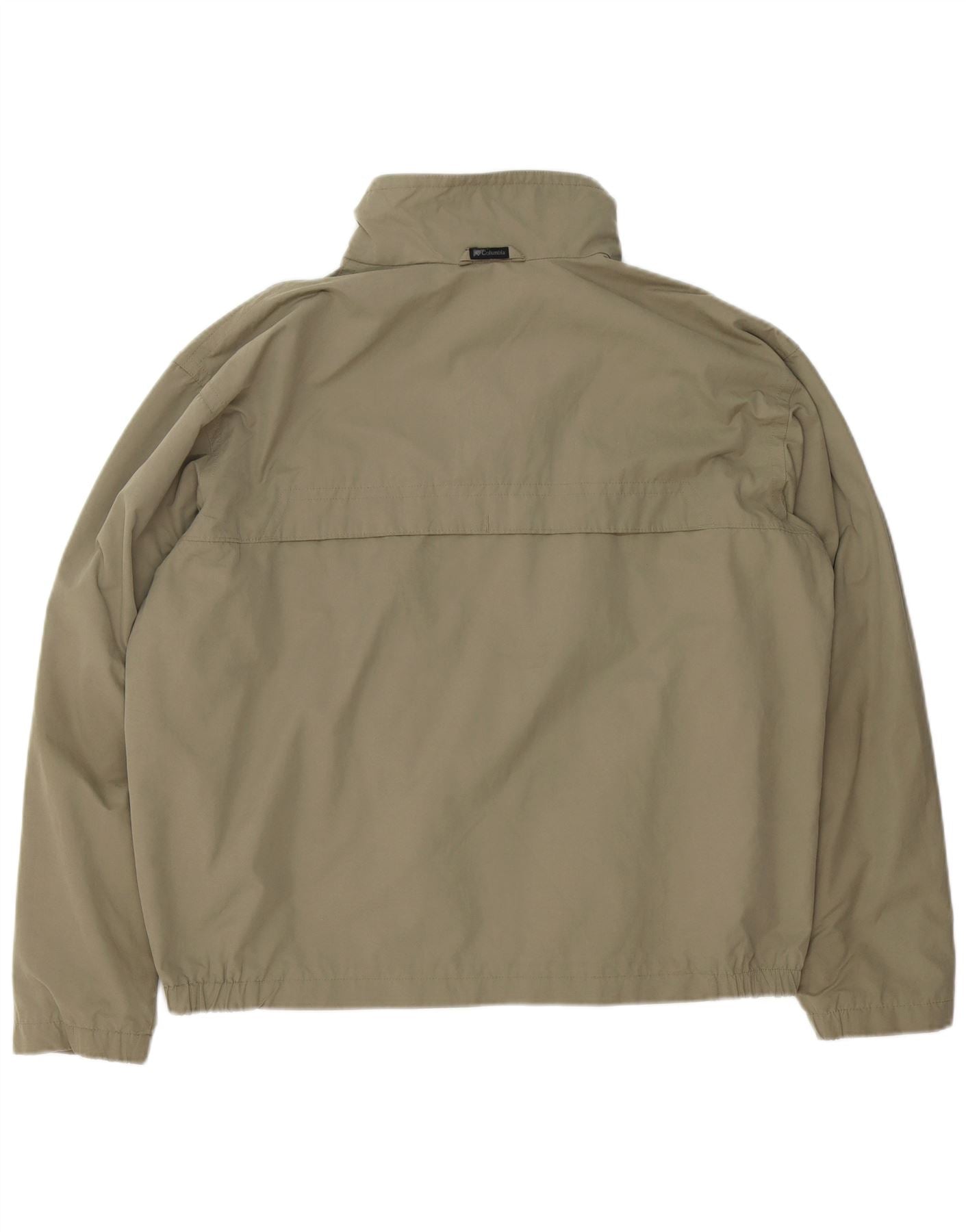 - Descrição da IA: Esta jaqueta corta-vento masculina Columbia é confeccionada em tecido de náilon cáqui durável. Possui decote com gola e fecho de correr completo para uso versátil. Mangas compridas e ajuste regular garantem movimentos confortáveis. A jaqueta é à prova de vento e resistente à água, oferecendo proteção prática. Inclui bolsos convenientes e um detalhe sutil do logotipo da marca. Este design equilibra funcionalidade com uma estética limpa e esportiva.