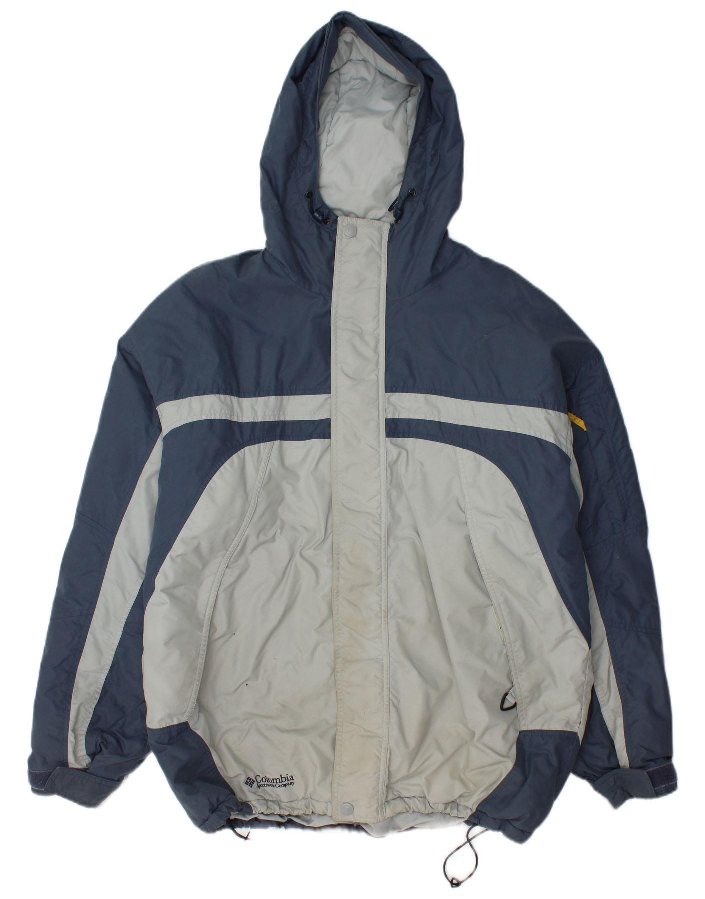COLUMBIA Mens Hooded Windbreaker Jacket UK 40 Large Navy Blue Colourblock
