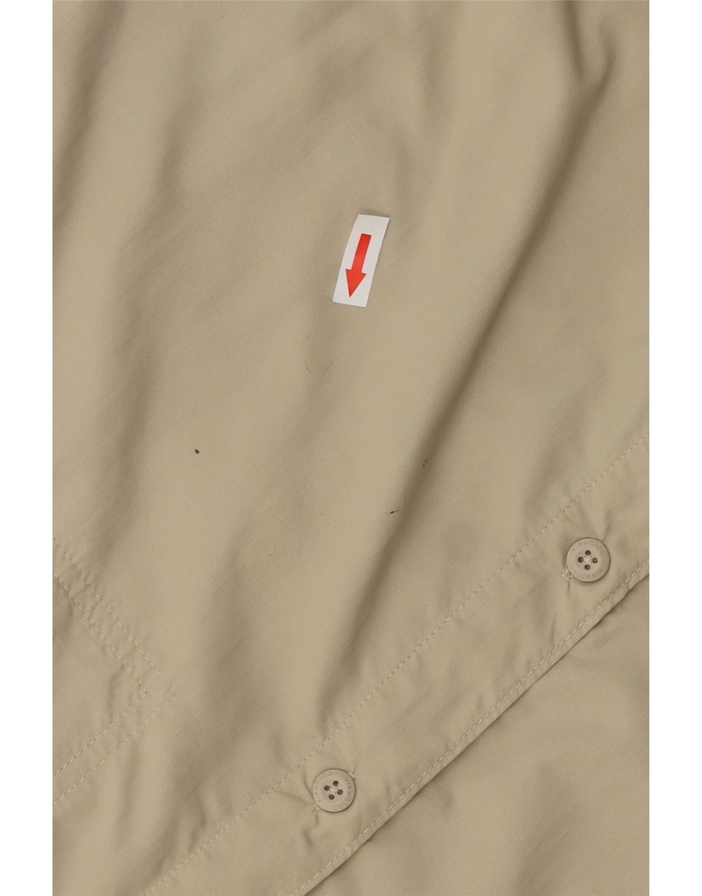 - Descrição da IA: Esta camisa masculina Columbia é confeccionada em tecido bege leve e respirável. Possui decote clássico com gola e botões frontais completos. Mangas compridas com punhos abotoados oferecem ajuste ajustável. Dois bolsos no peito com abas de botão proporcionam utilidade prática. O ajuste regular garante conforto e facilidade de movimento para atividades ao ar livre. Botões em tons sutis completam o design funcional.