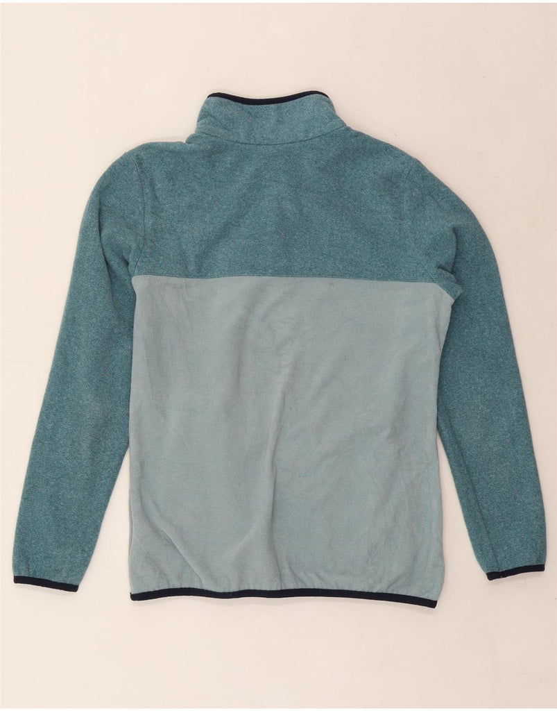 COLUMBIA Womens Button Neck Fleece Jumper UK 12 Medium Blue Colourblock
