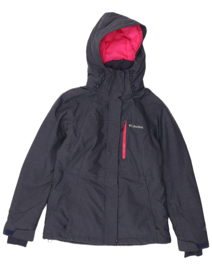 COLUMBIA Womens Omni-Heat Hooded Rain Jacket UK 10 Small Navy Blue Nylon