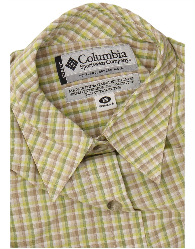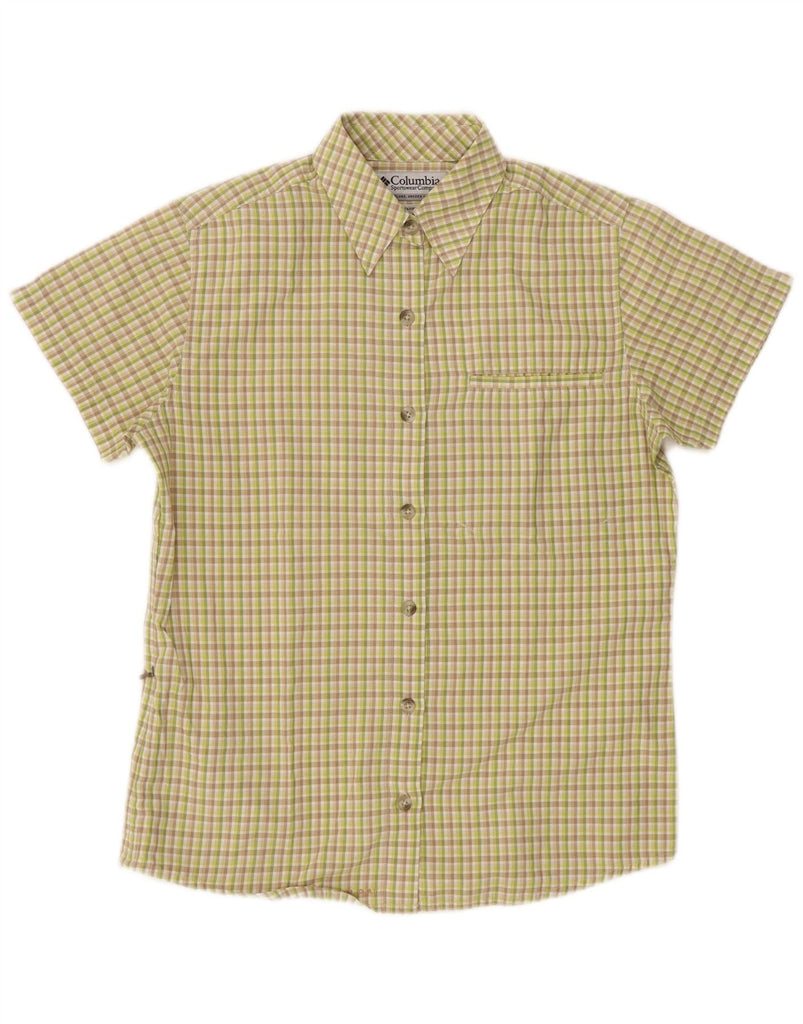 COLUMBIA Womens Overshirt Short Sleeve Shirt UK 6 XS Green Check Polyester