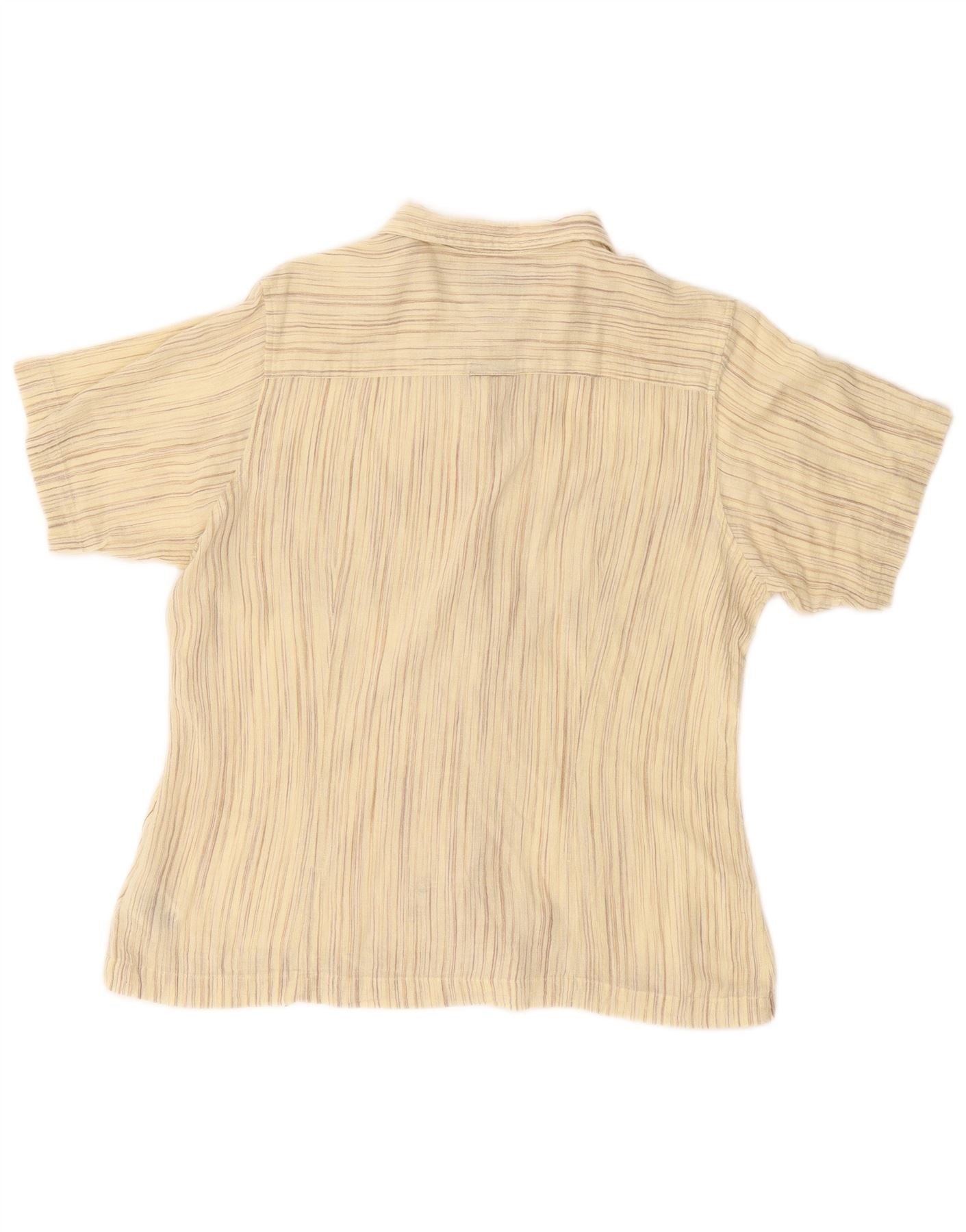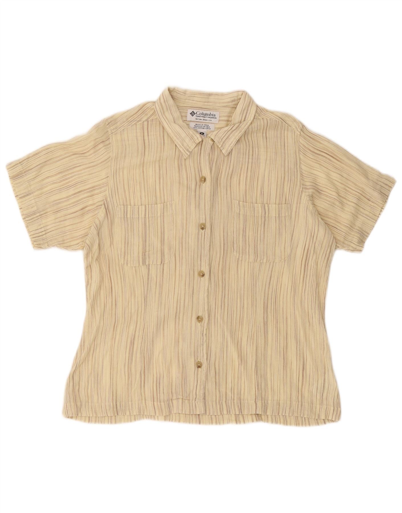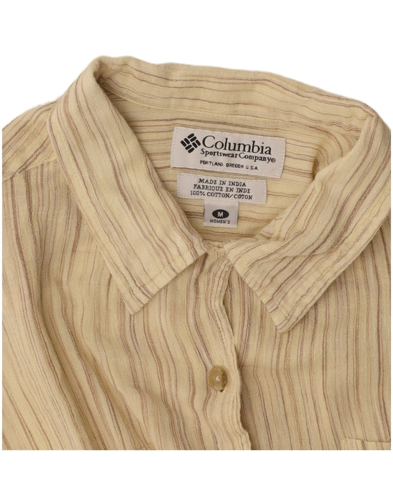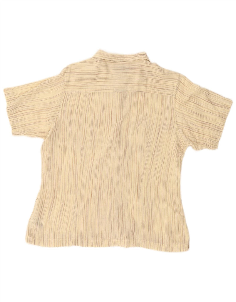 COLUMBIA Womens Short Sleeve Shirt UK 14 Medium Beige Pinstripe Cotton