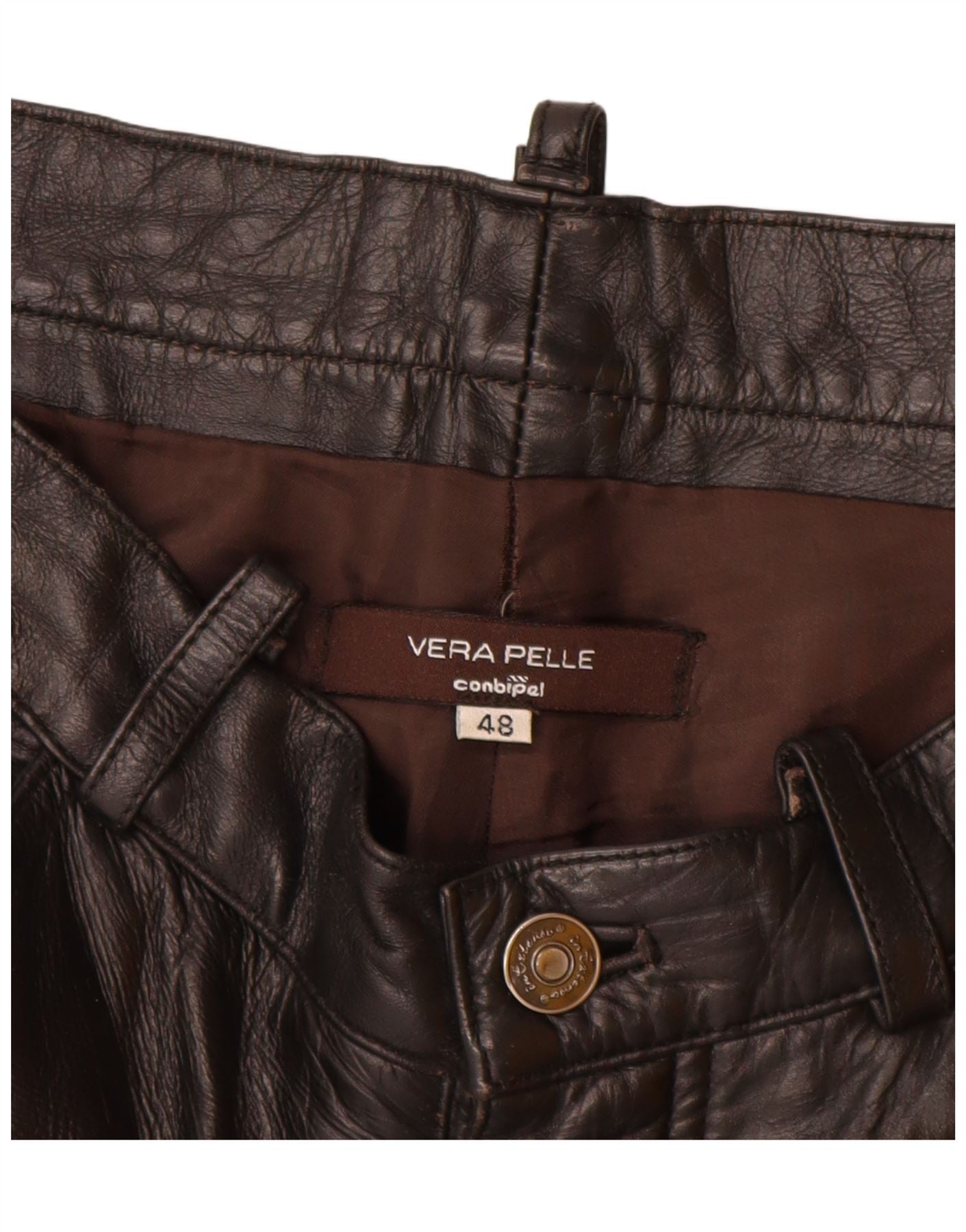 Calça masculina de couro reto CONBIPEL IT 48 médio W32 L32 couro preto