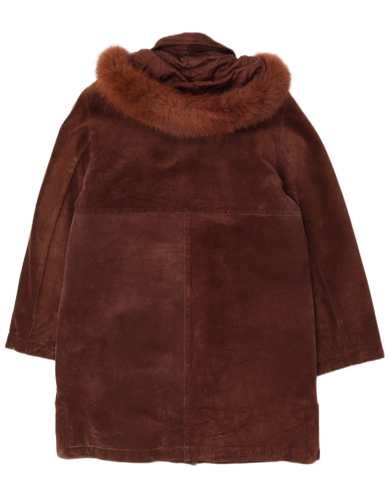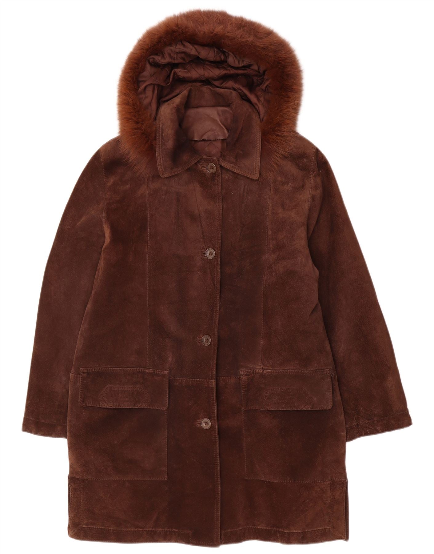 Sobretudo feminino de camurça com capuz CONBIPEL IT 42 couro marrom médio