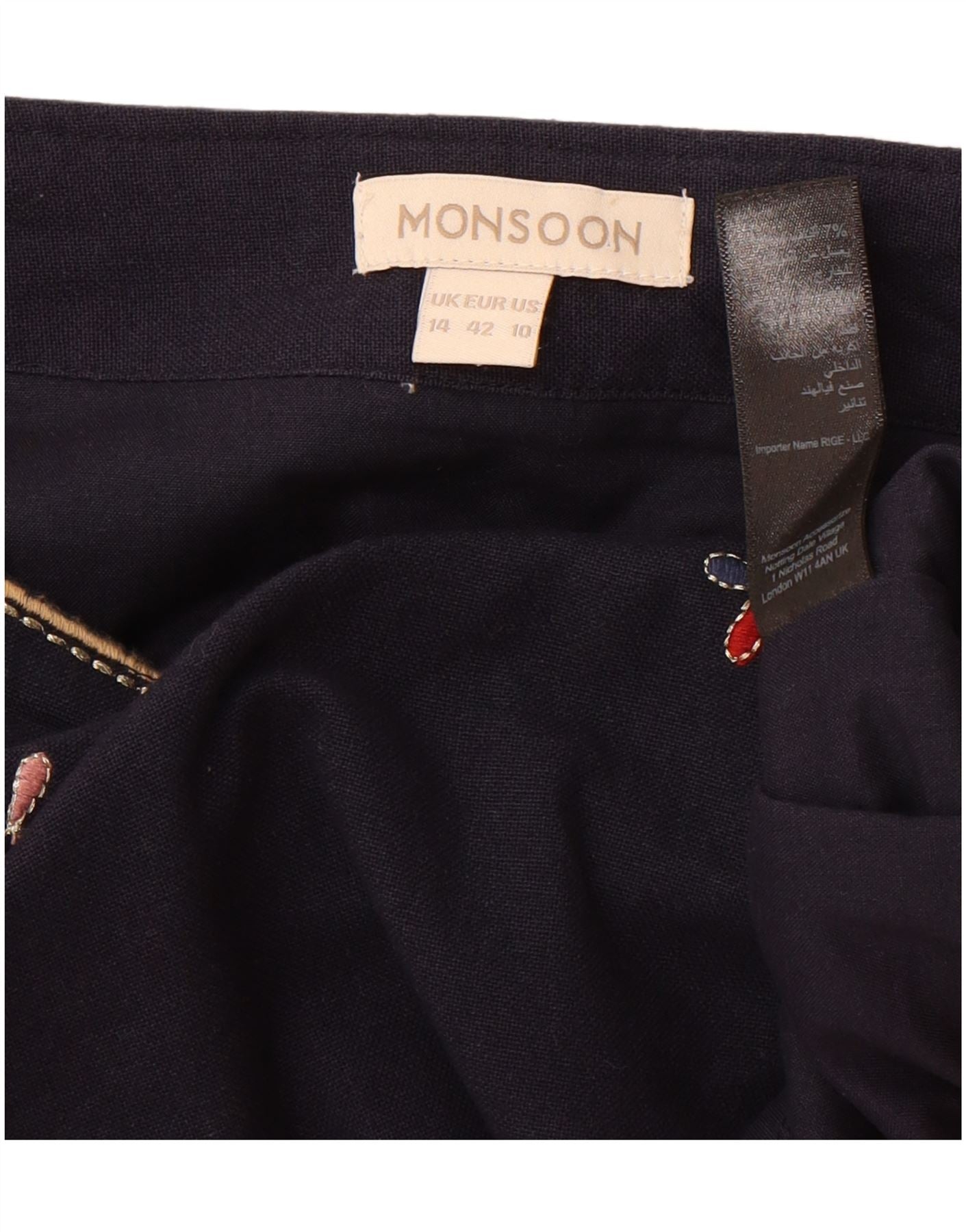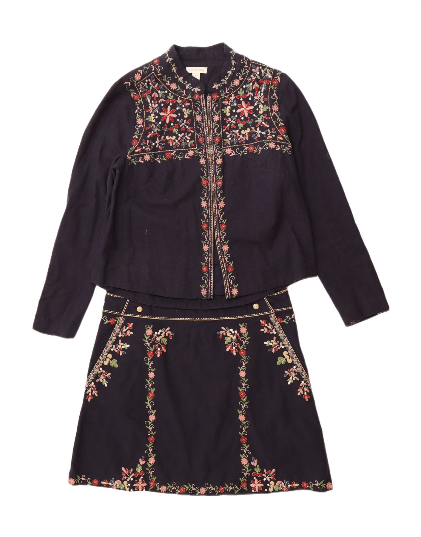 Conjunto de saia feminina MONSOON de 2 peças Reino Unido 14 grande W36 algodão floral azul marinho