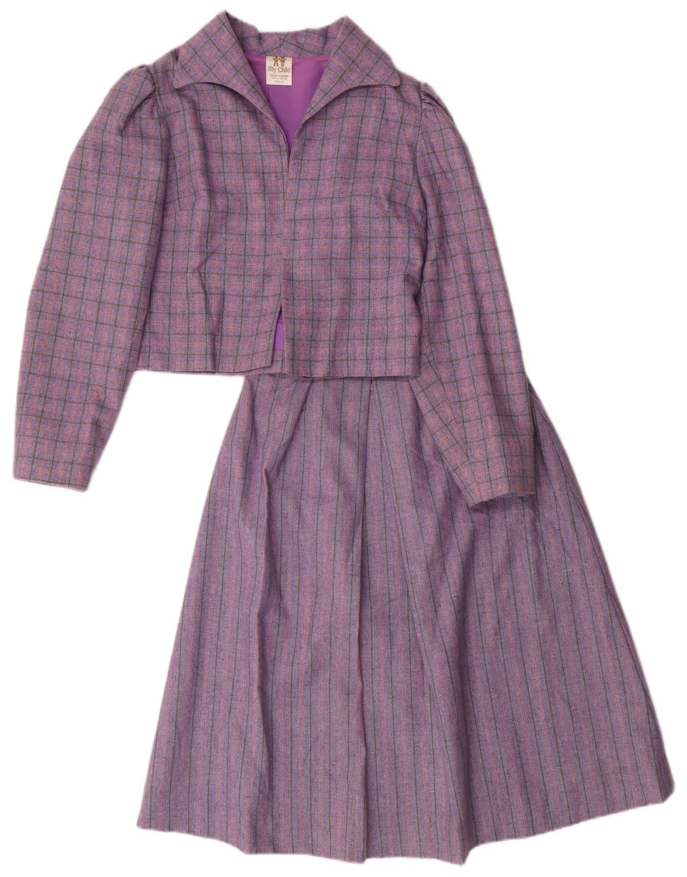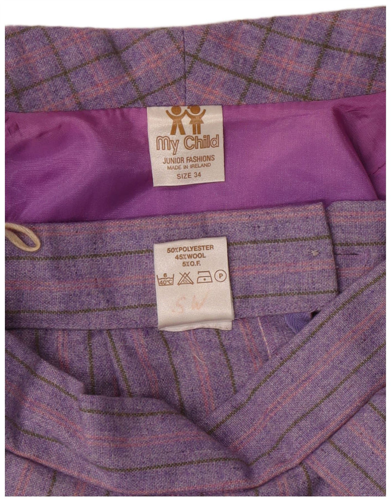 Conjunto de saia VINTAGE para meninas de 2 peças 8-9 anos W24 poliéster xadrez roxo