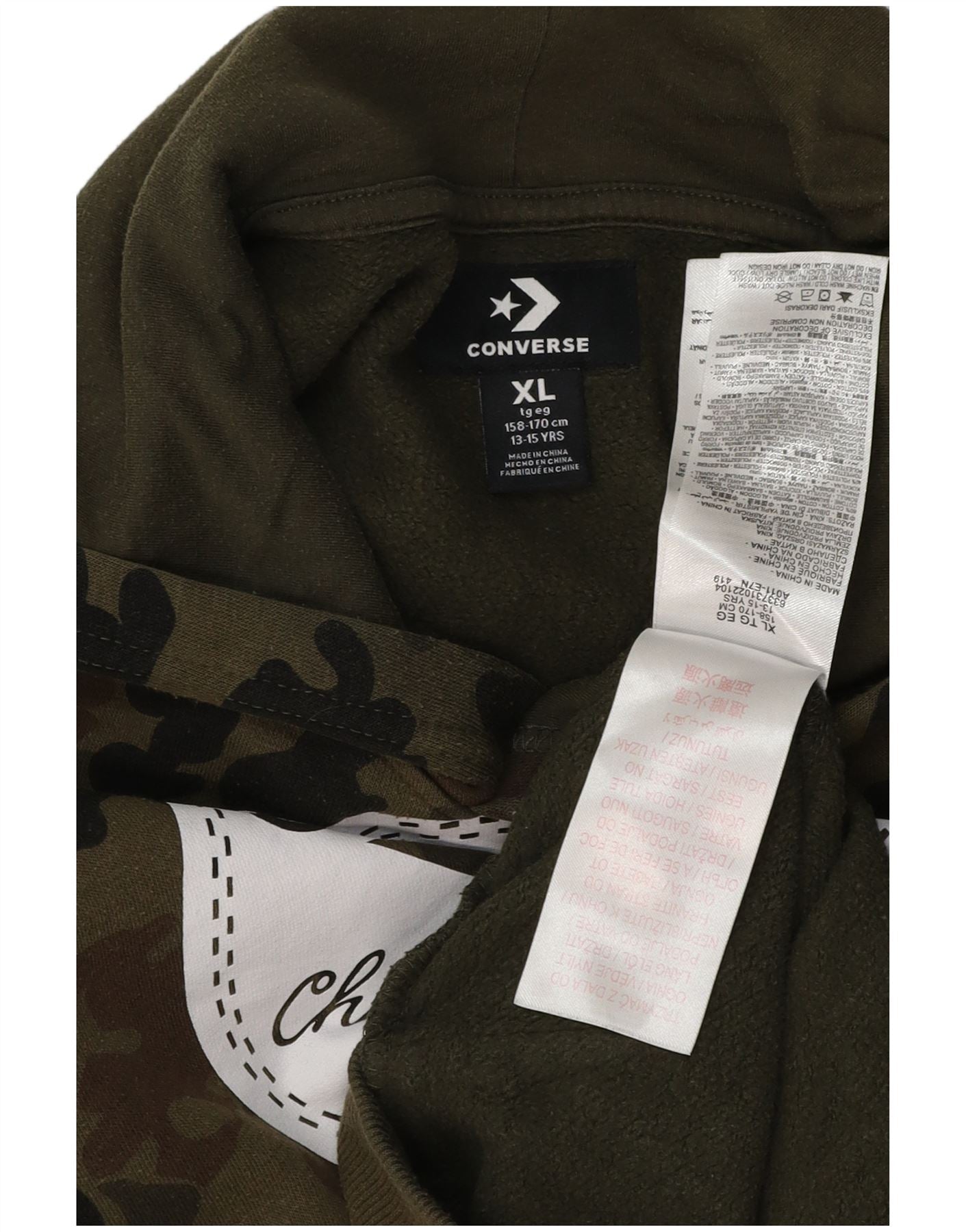 CONVERSE Boys Chuck Taylor Hoodie Jumper 13-14 Years XL Khaki Camouflage