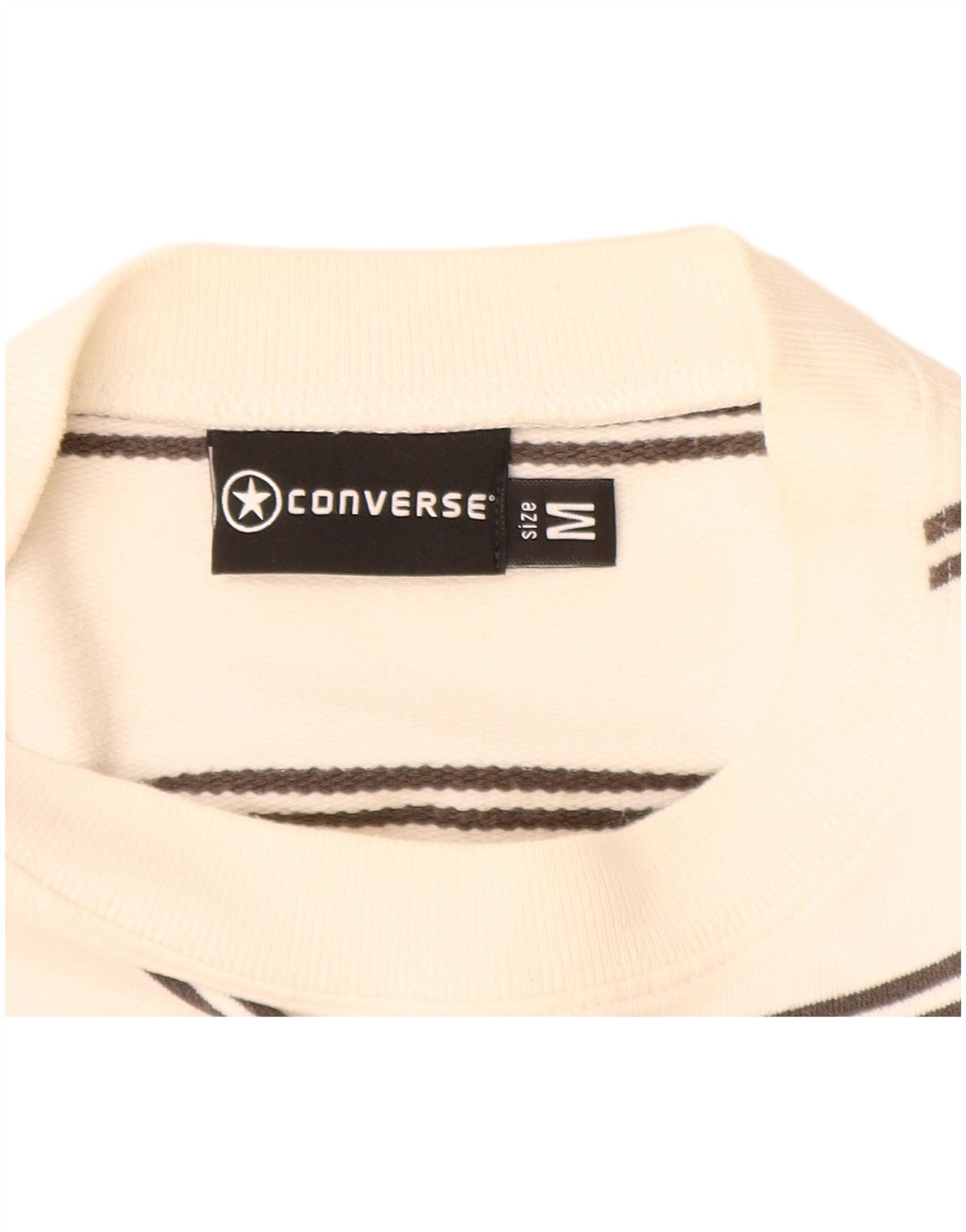 CONVERSE Mens Graphic Sweatshirt Jumper Medium Off White Striped Cotton
