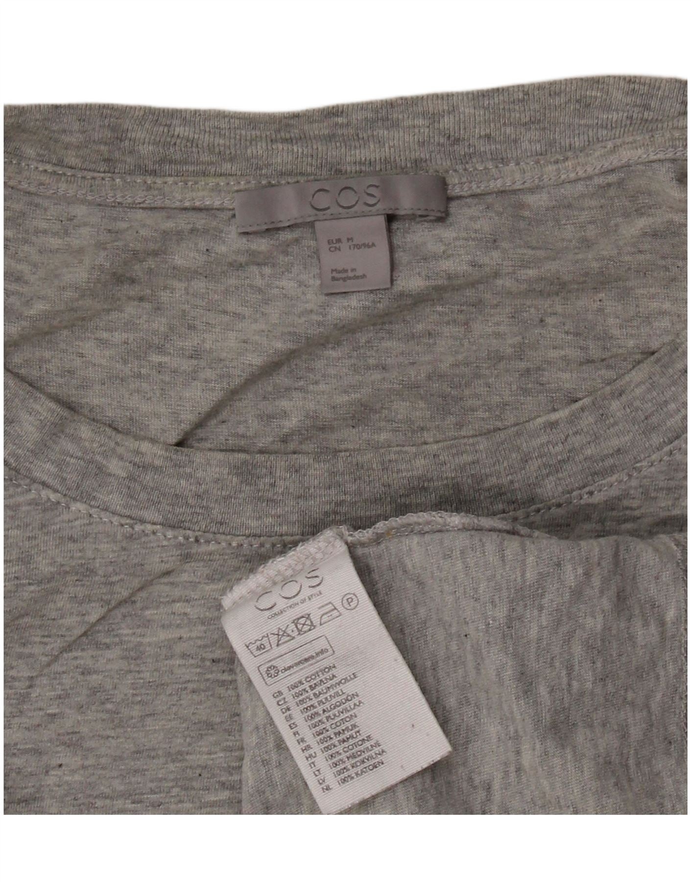 Camiseta feminina COS Top UK 14 algodão manchado cinza médio