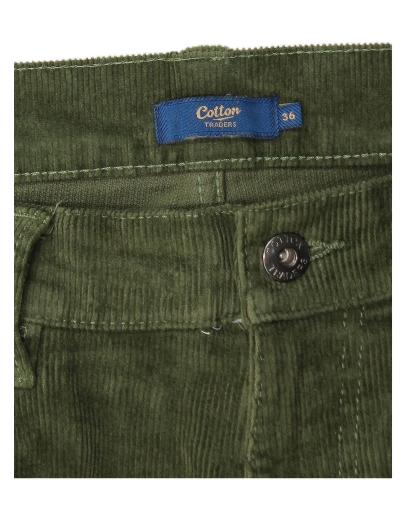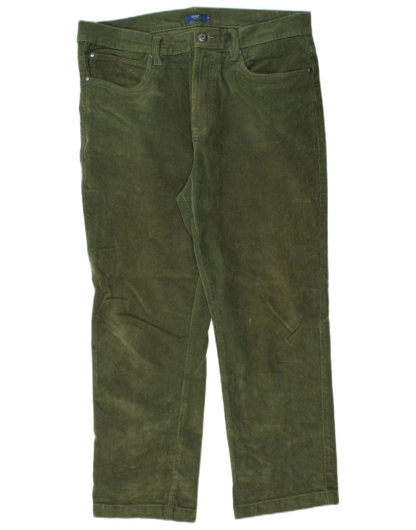 COTTON TRADERS Calça masculina reta de veludo W36 L26 algodão verde