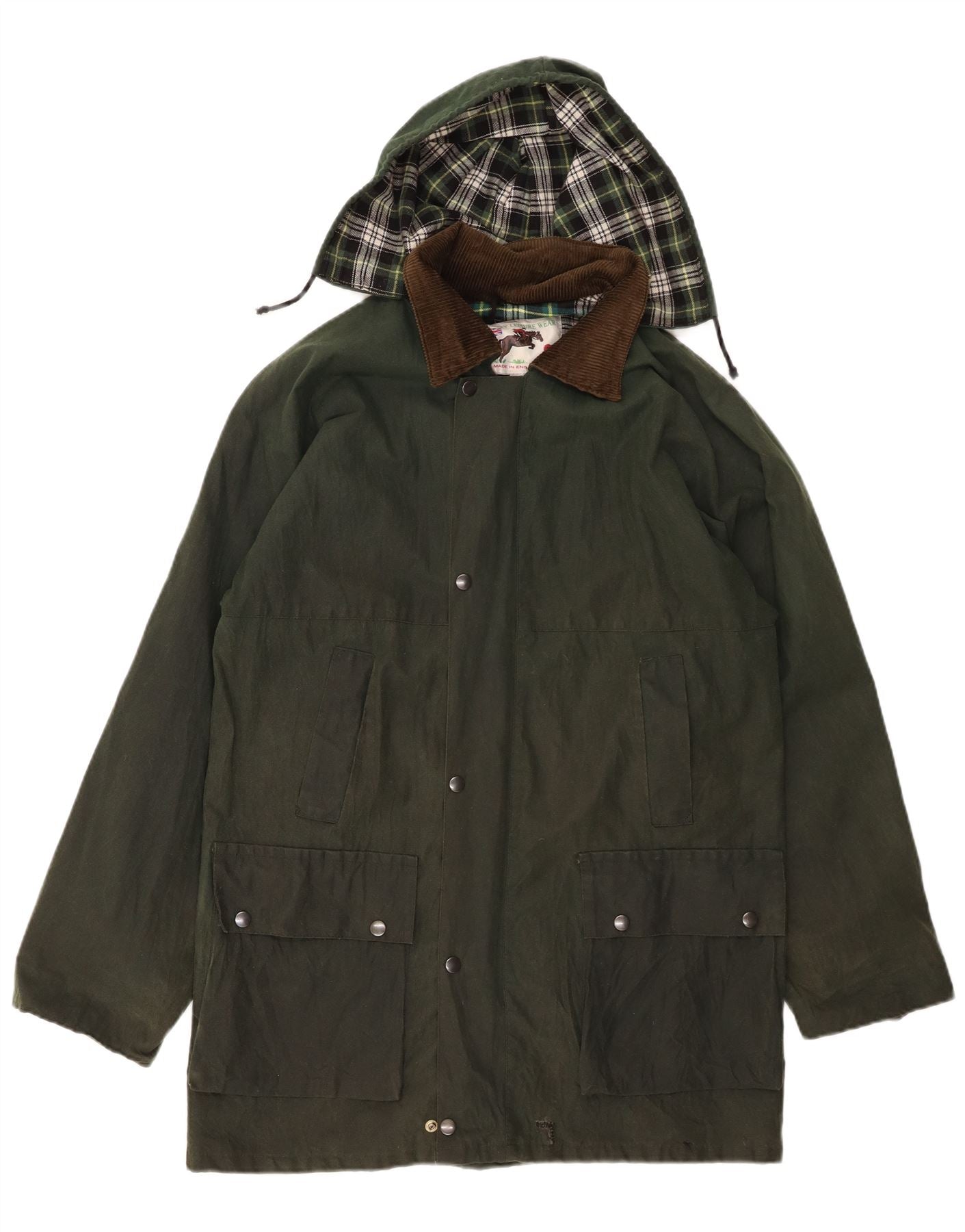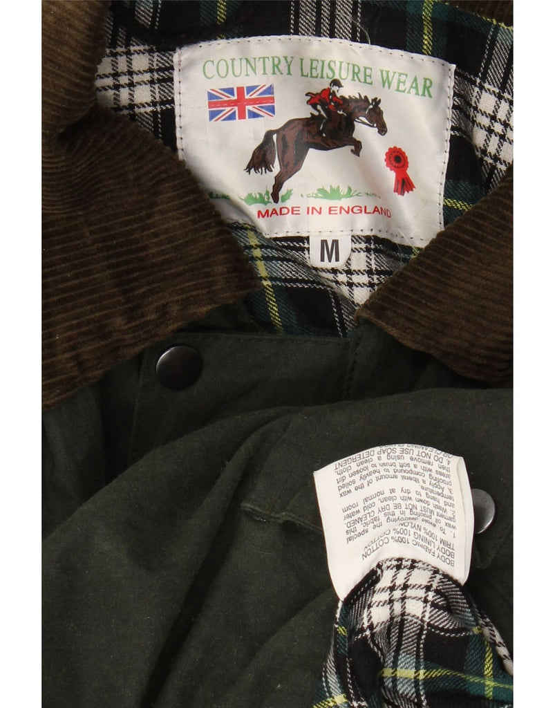 COUNTRY LEISURE WEAR Mens Hooded Waxed Jacket UK 38 Medium Khaki Cotton