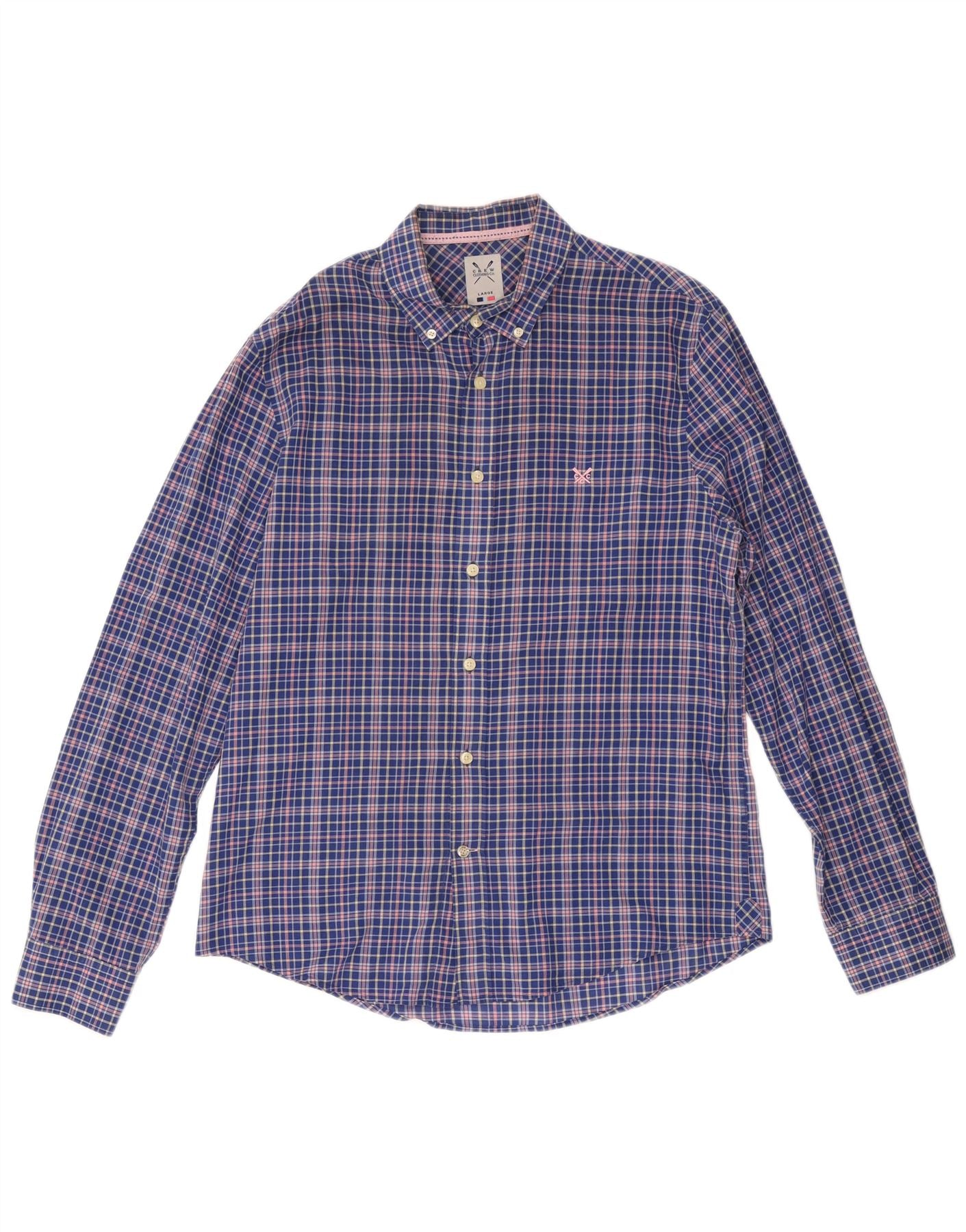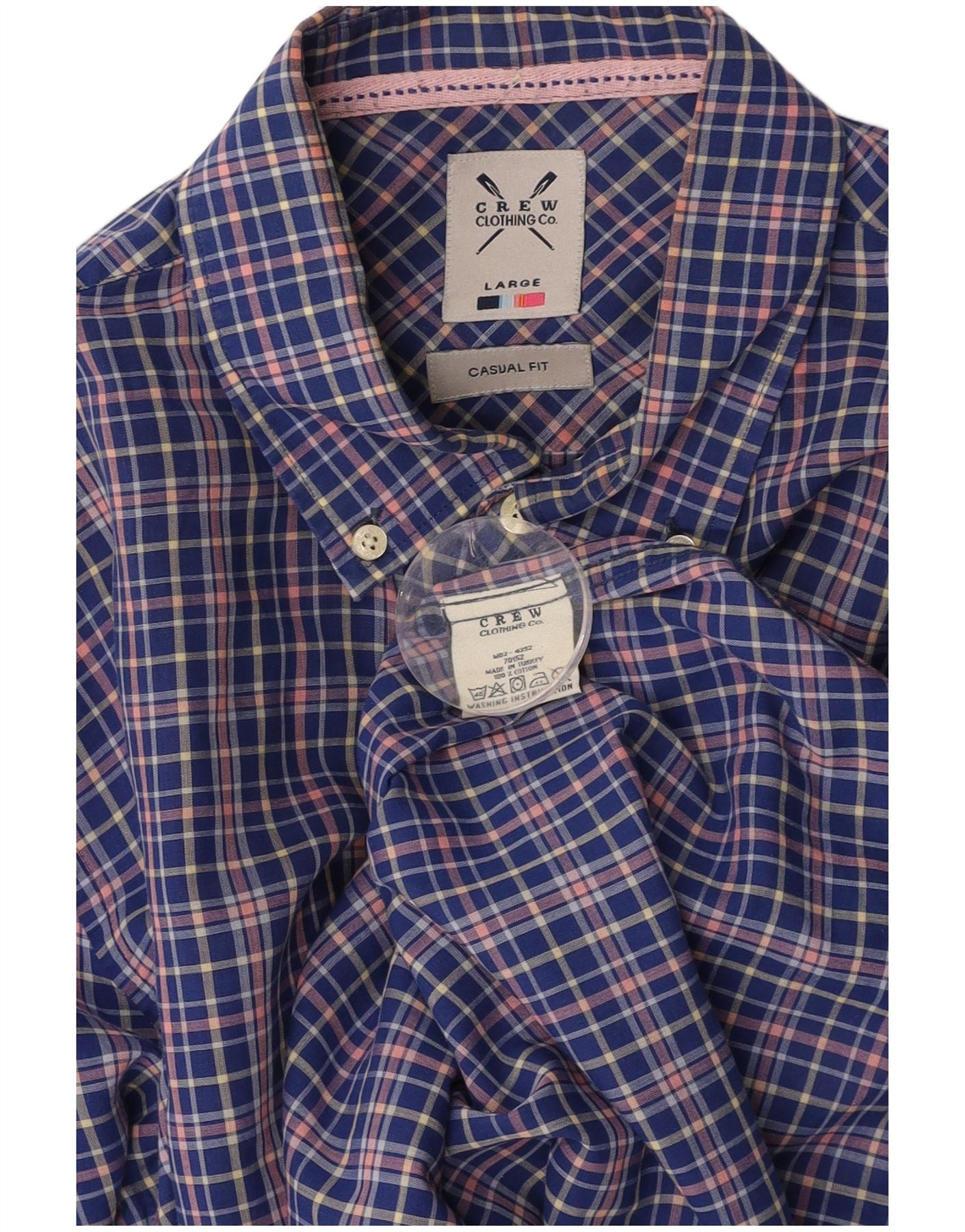 CREW CLOTHING Camisa masculina casual de ajuste grande algodão xadrez azul