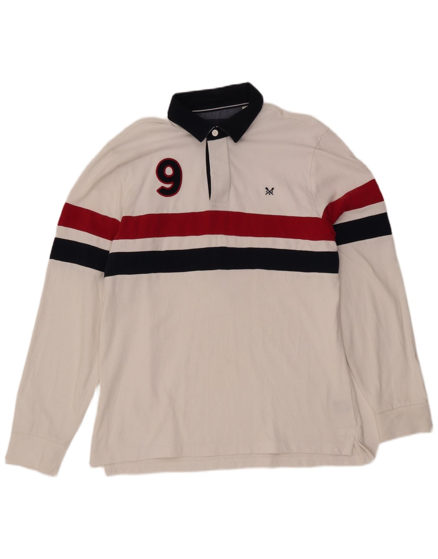 CREW CLOTHING Camisa polo masculina gráfica de rugby grande bloco colorido branco
