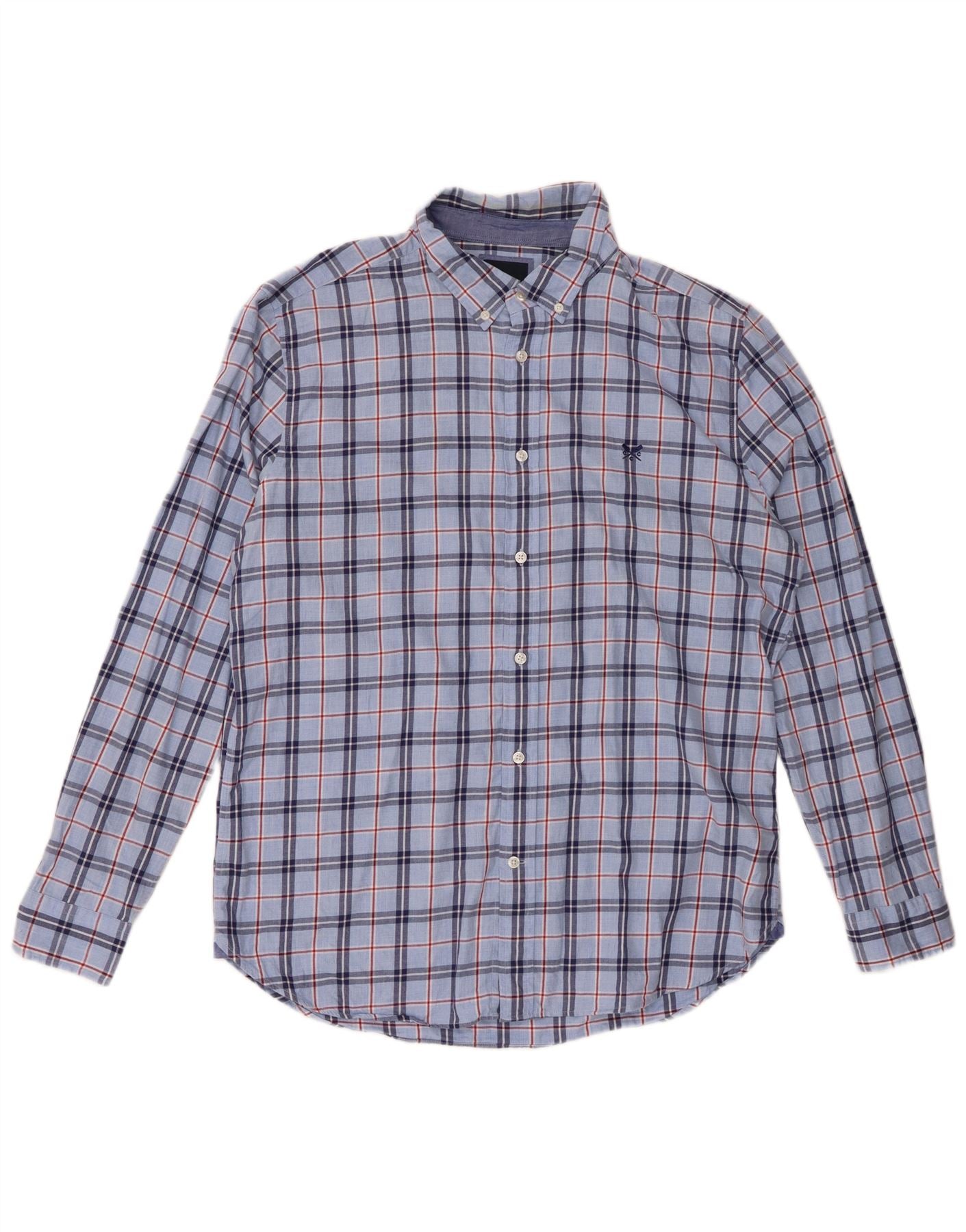 Camisa masculina de flanela Slim Fit Crew Clothing XL azul xadrez de algodão