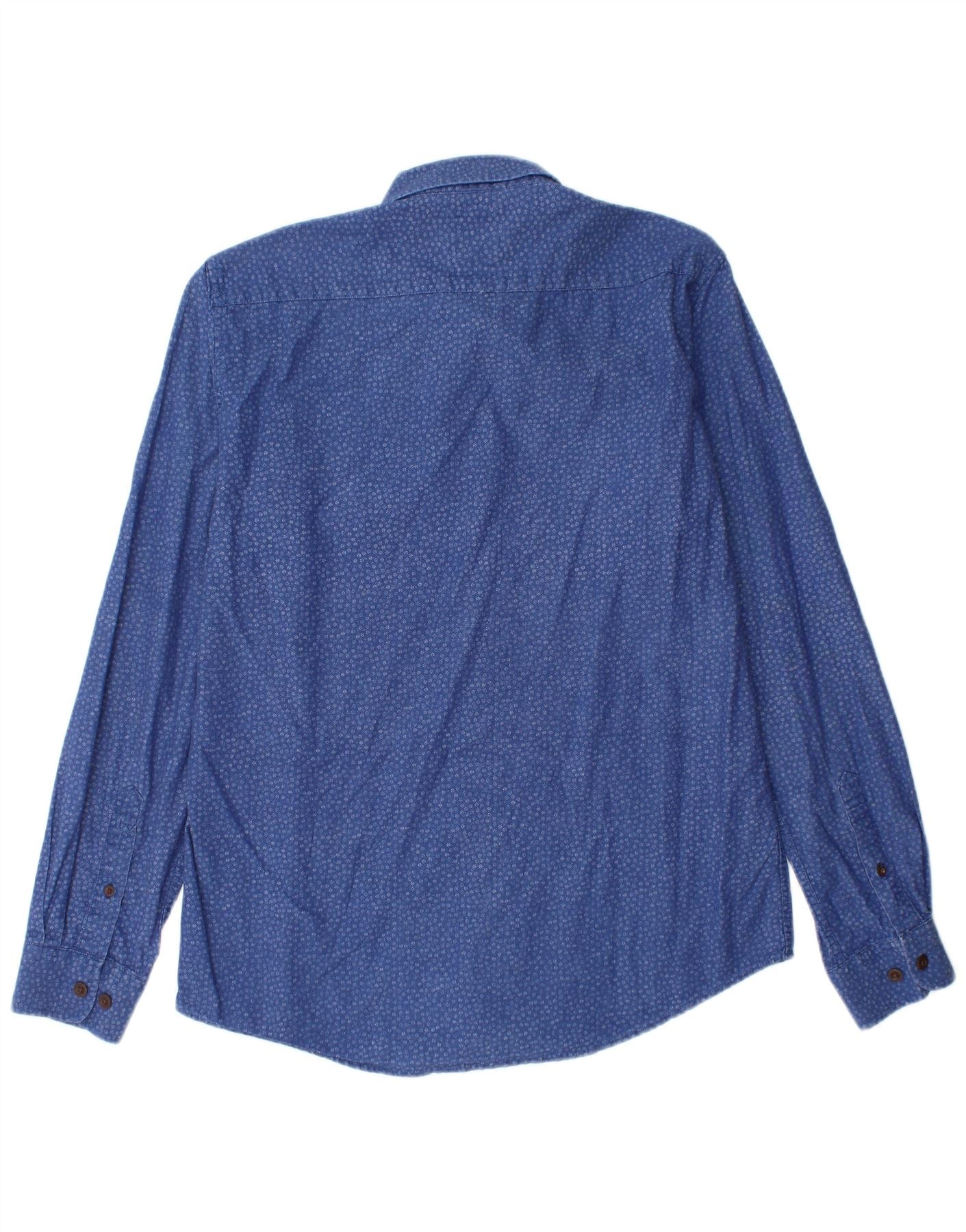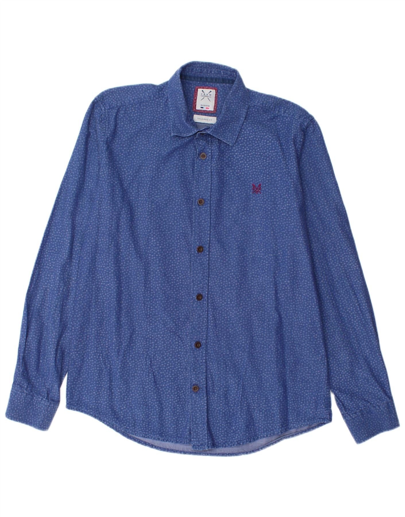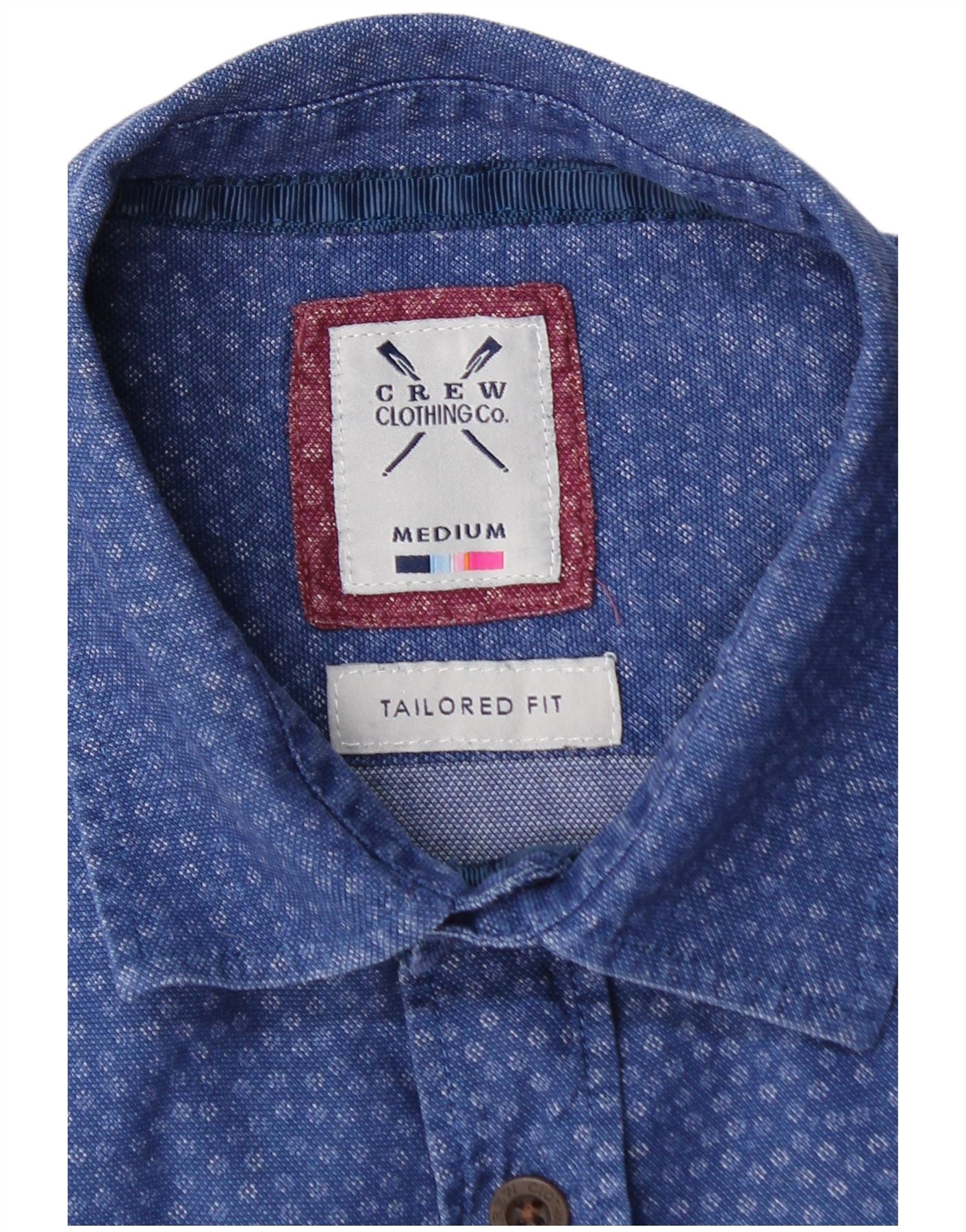 CREW CLOTHING Mens Tailored Fit Shirt Medium Blue Spotted Cotton