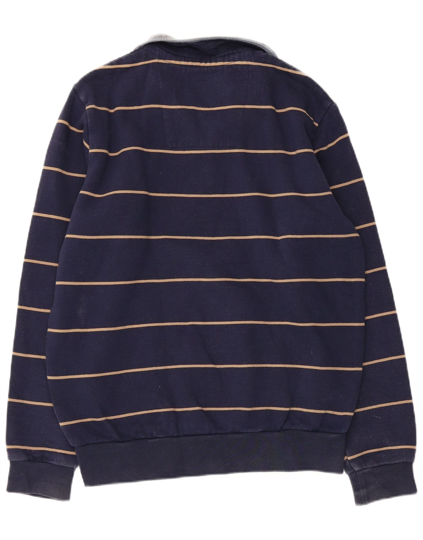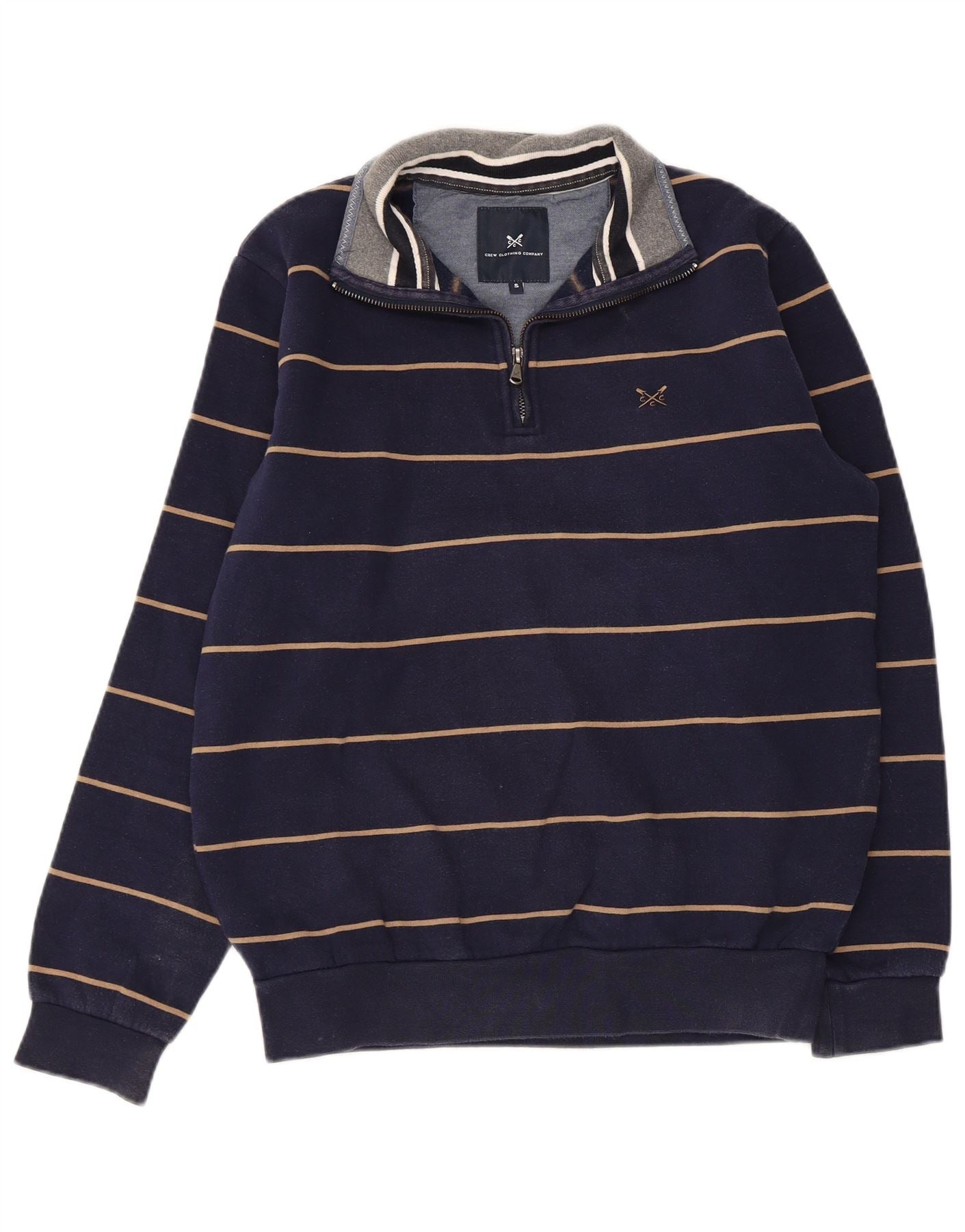 CREW CLOTHING Suéter masculino com zíper e gola pequena listrado azul marinho